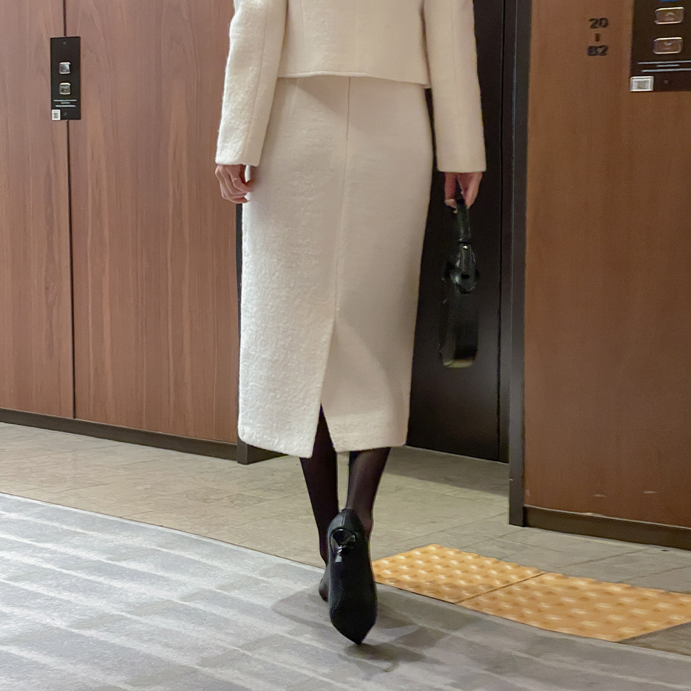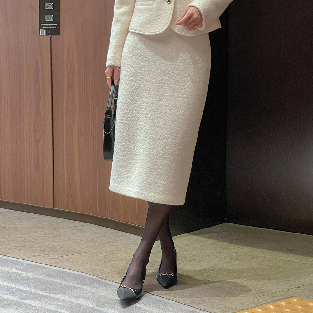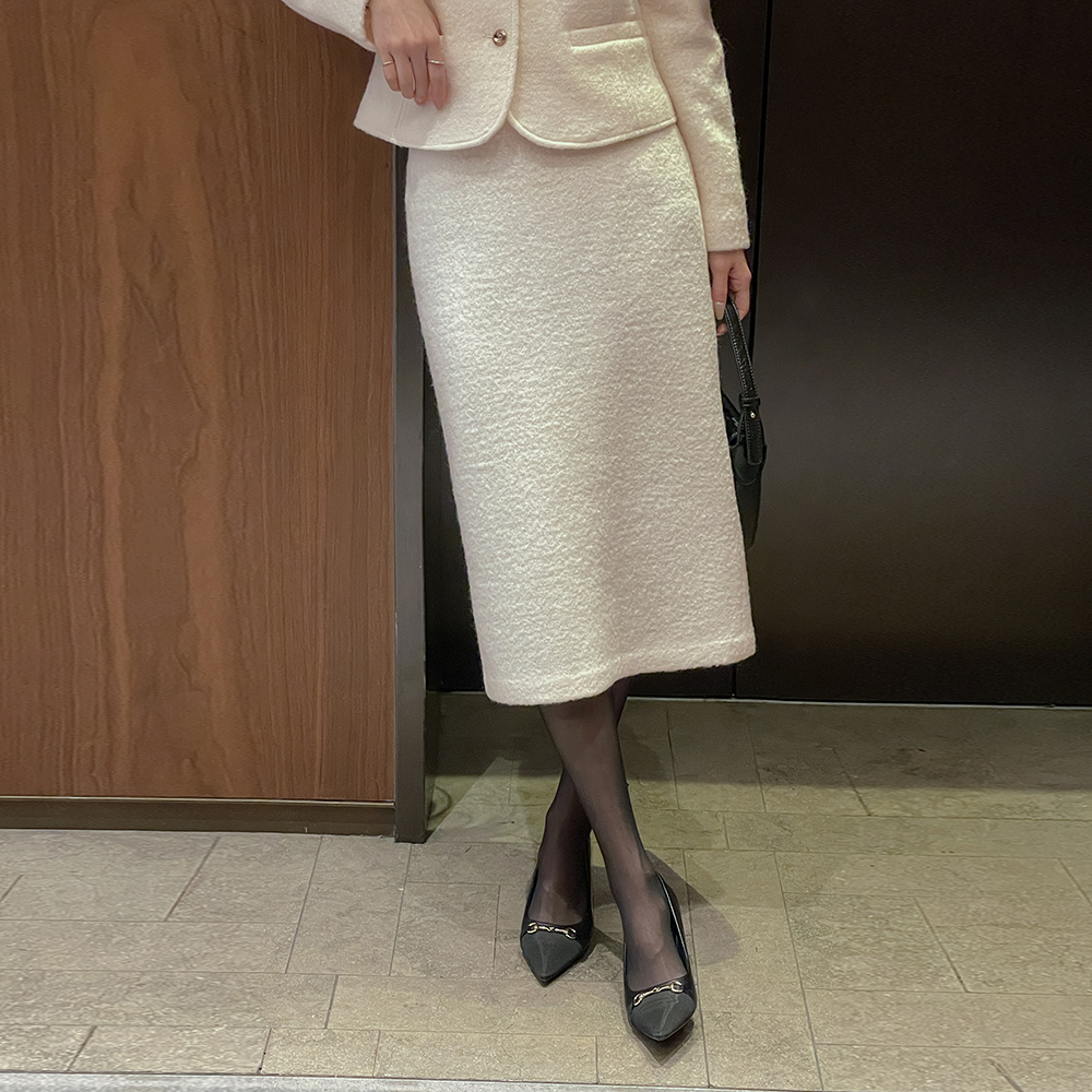 Wool100% Bouclé Tweed H-line Long Set-up Skirt
