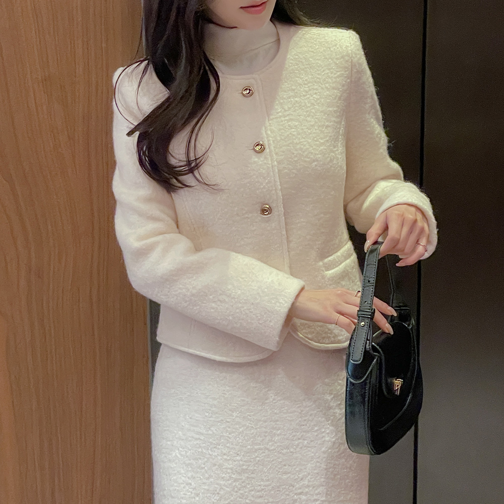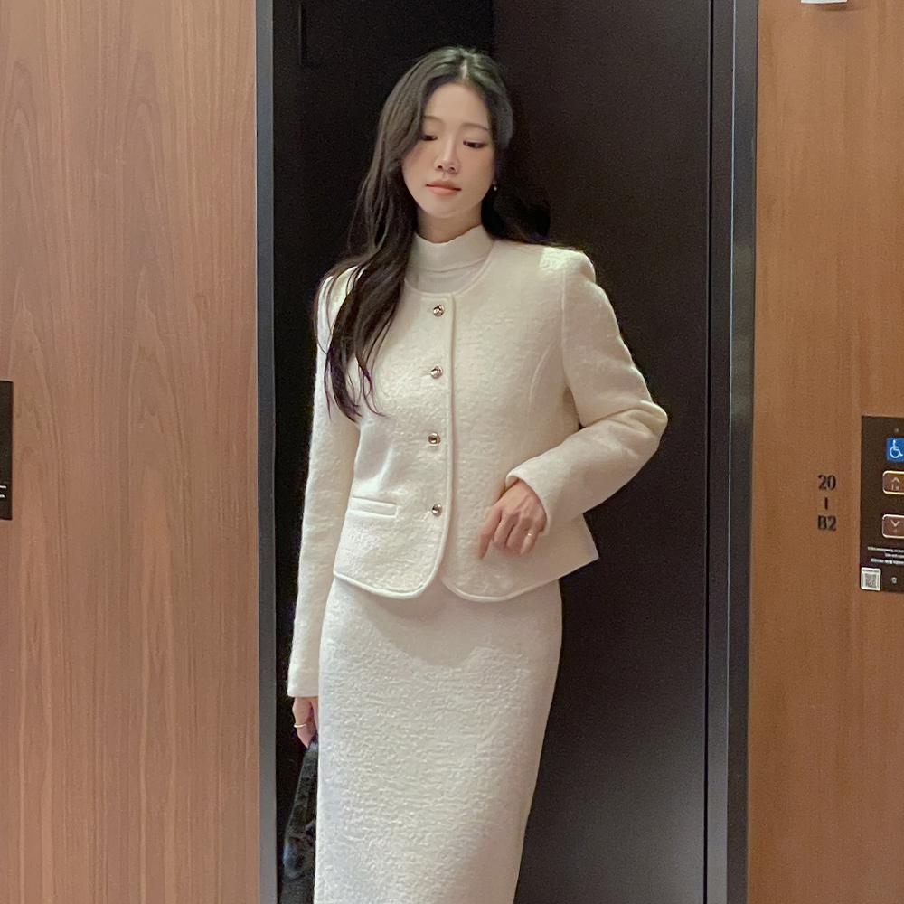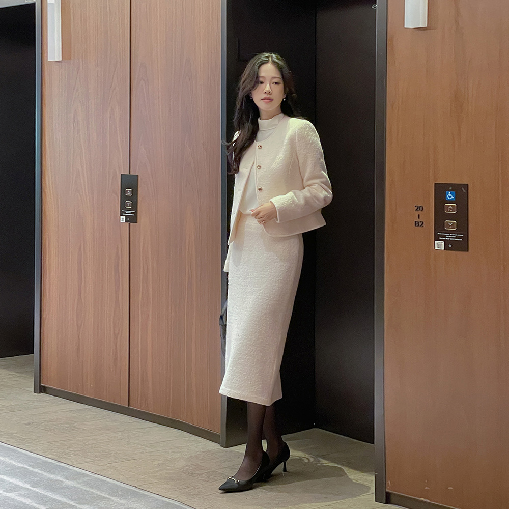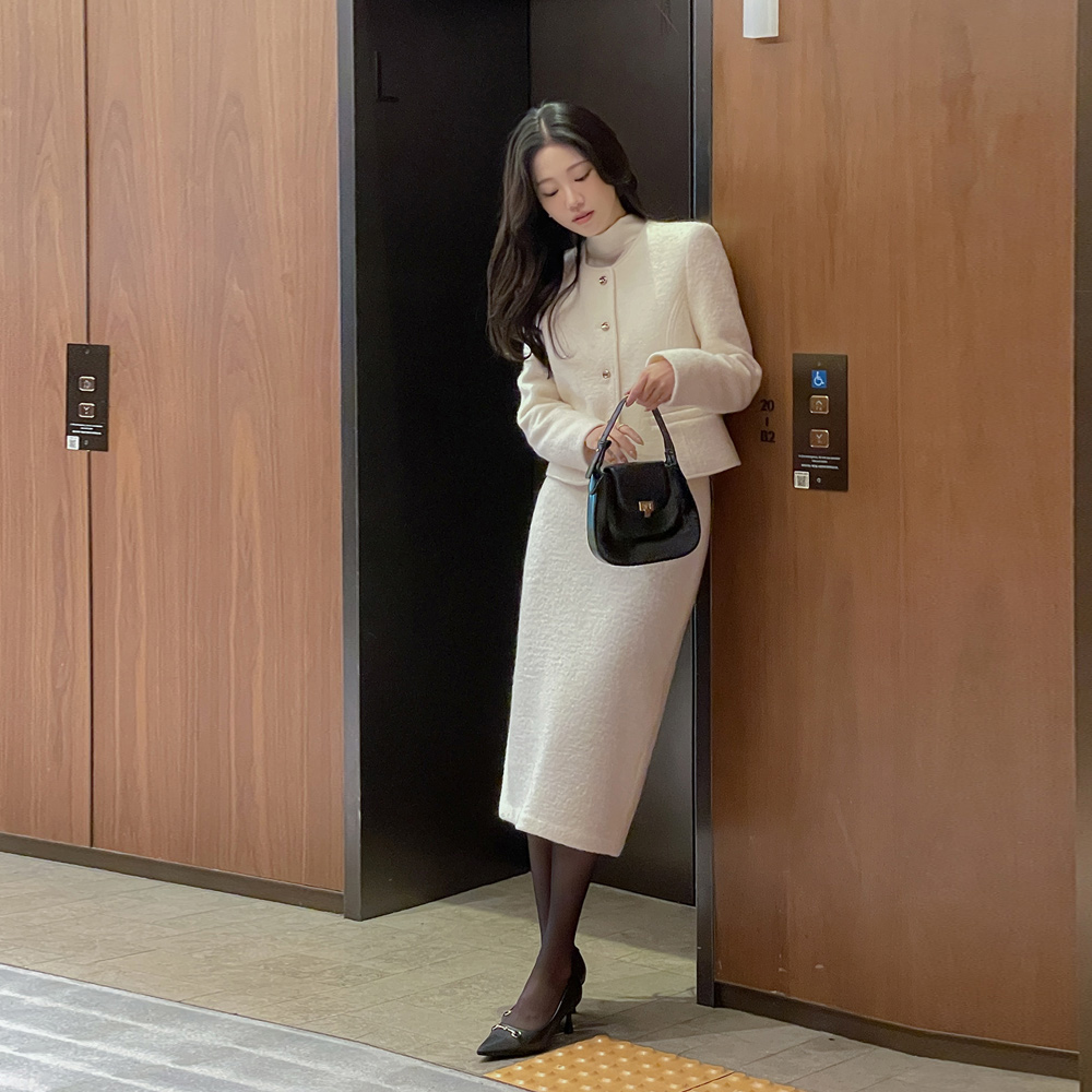 Wool100% Bouclé Tweed H-line Long Set-up Skirt