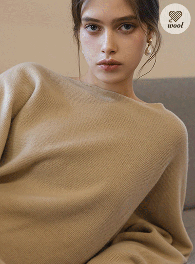 Boat Neck Cashmere&Wool Whole Garment Crop Knit