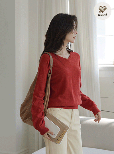 V-neck Solid Lamb's Wool Ragran Knit