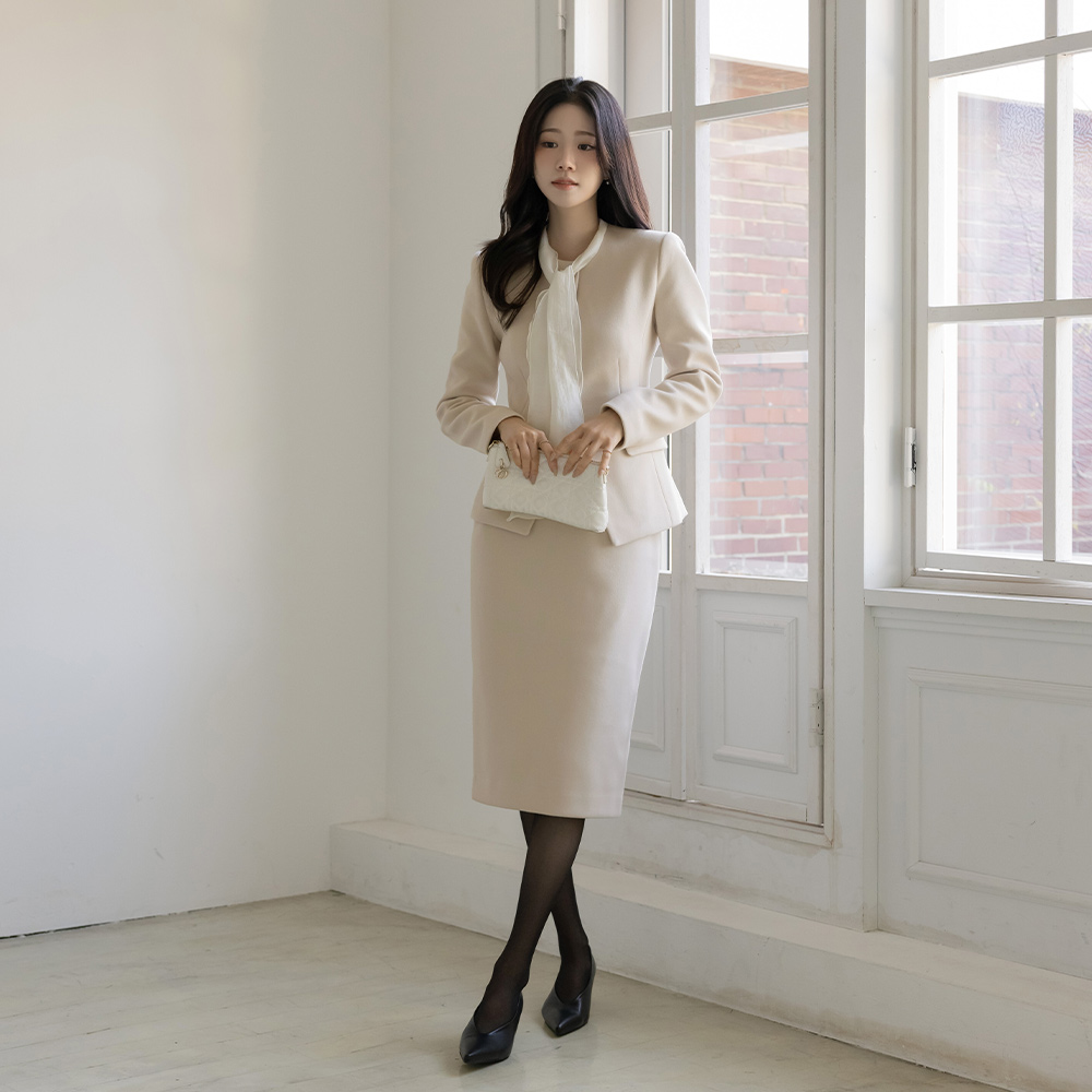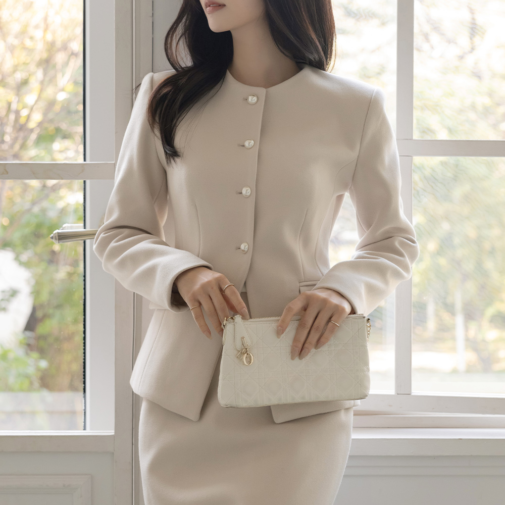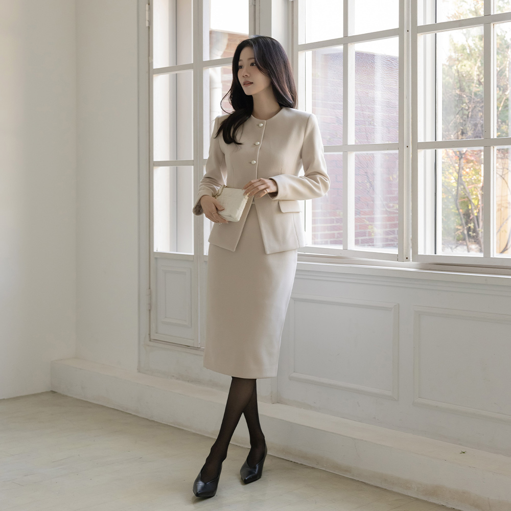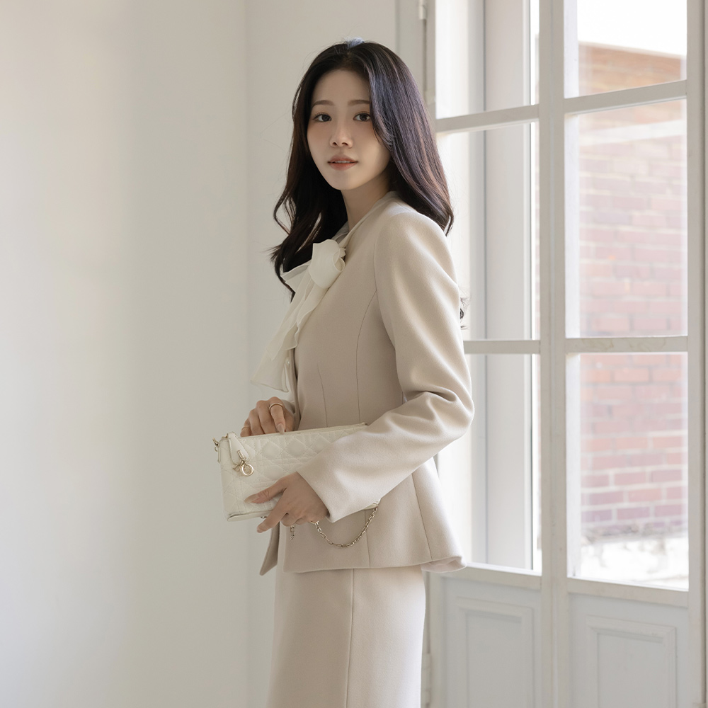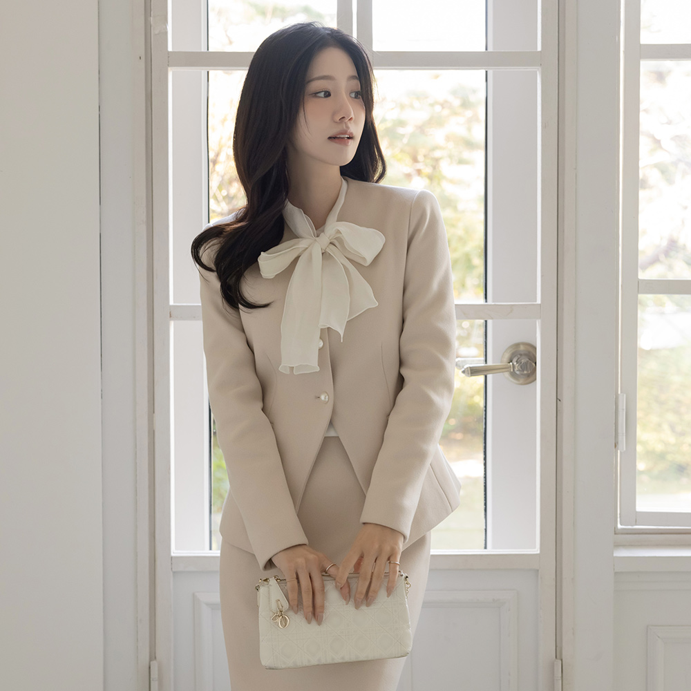 Feminine Pearl Button Set-up Jacket(+Tie)