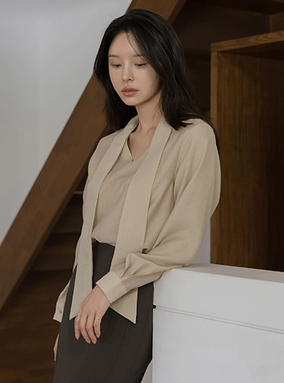 Classy Tie Neck Wool Blouse