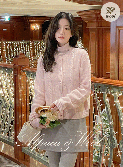 Candy Alpaca&Wool Pearl Buttons Cardigan