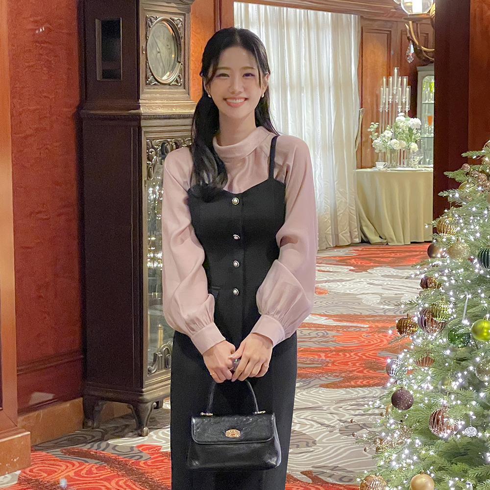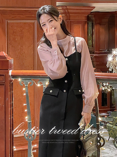 Bustier Fleece H-line Tweed Dress
