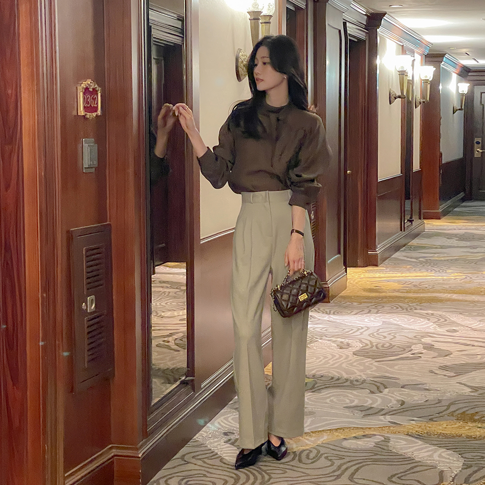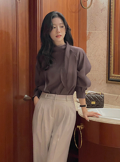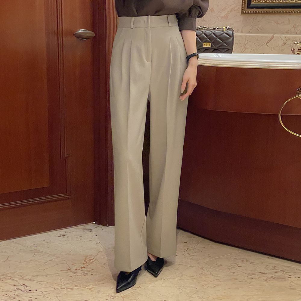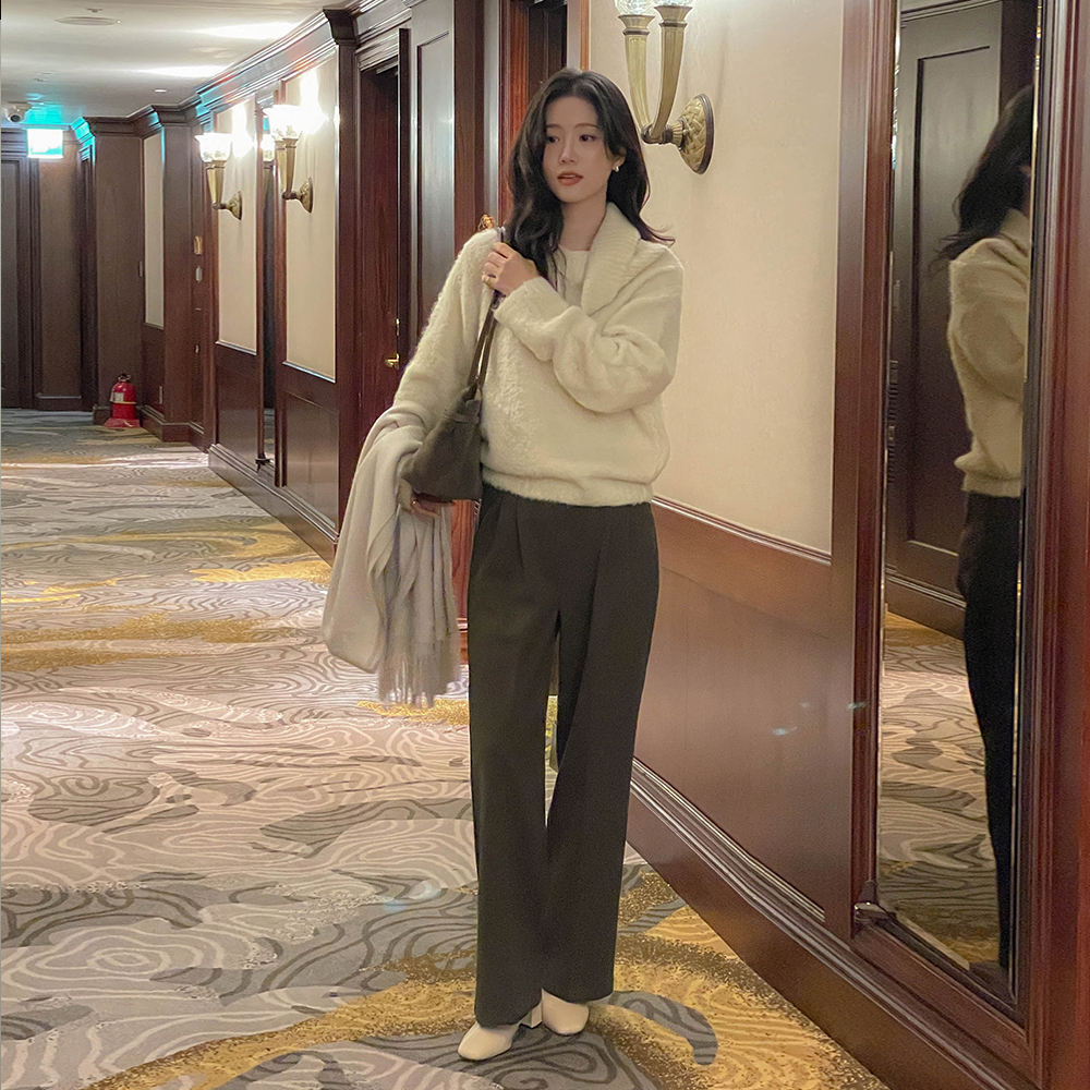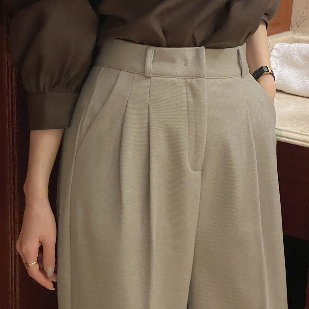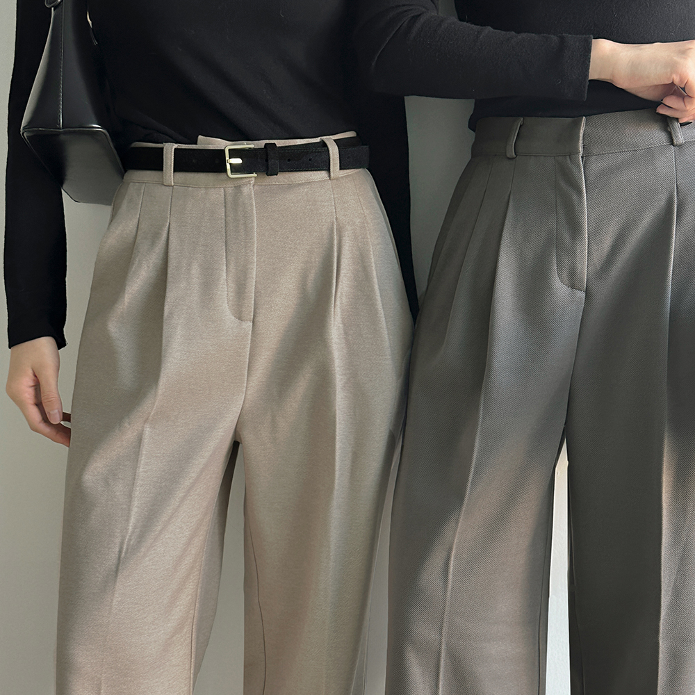 pintuck Back Banding wide fit Wool Fleece Slacks (Middle/Longver)