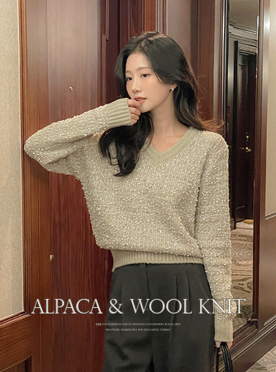 VNeck Alpaca&Wool Tassel Thick Knit