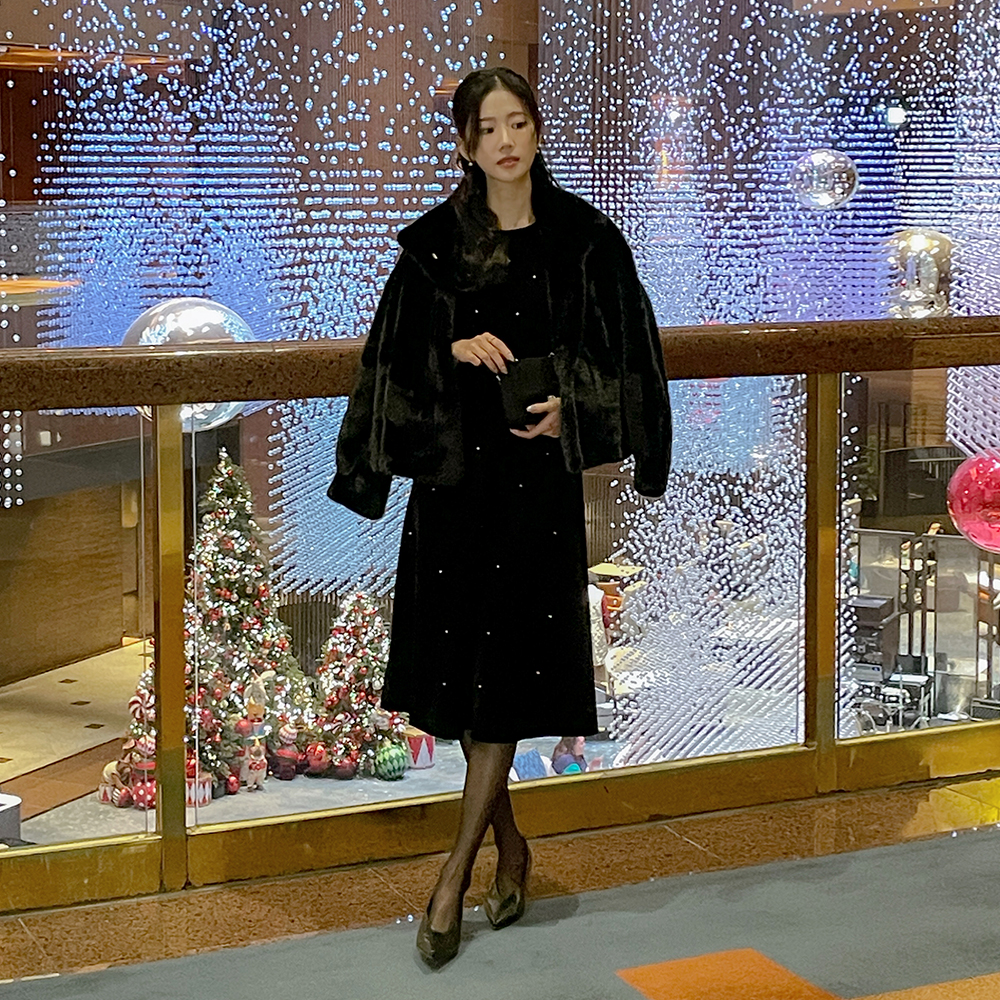 로아 Silver-Ball Velvet A-line Dress (Mini/Longver)