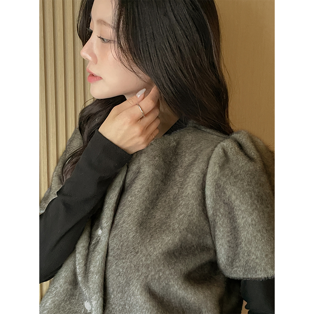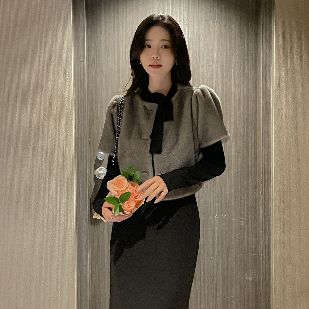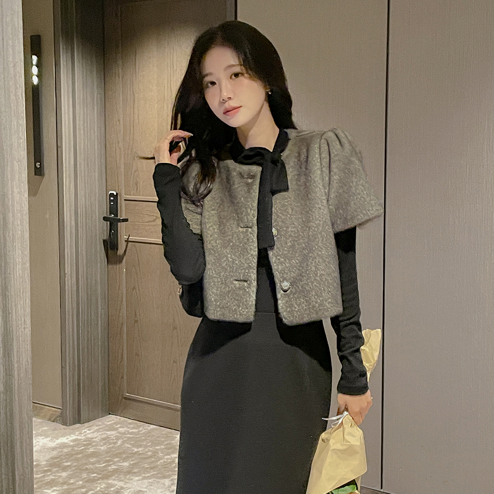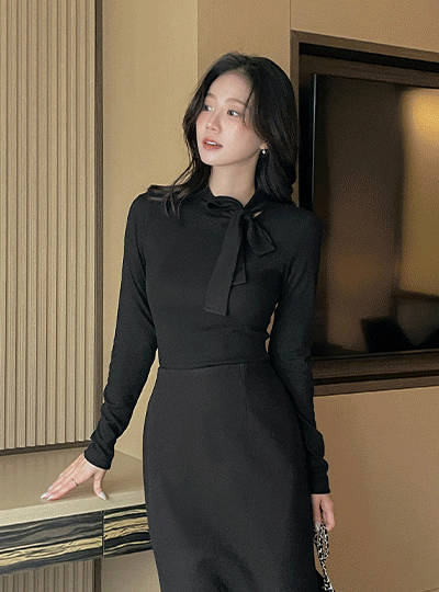 Ribbon neckline 겉기모 Span T-shirt