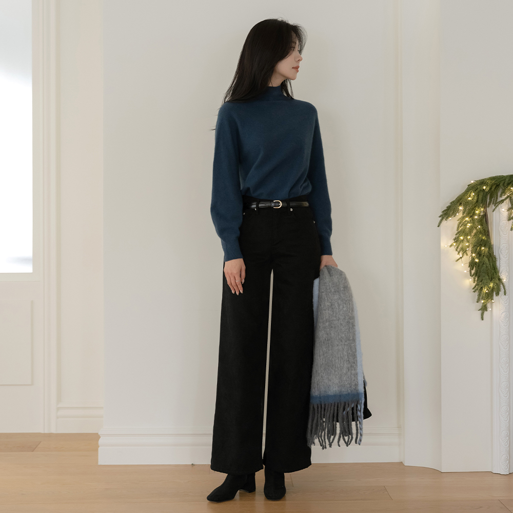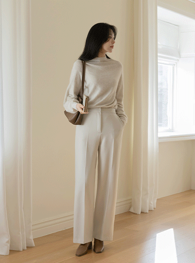 Thick Back Banding Fleece Slim Fit Slacks