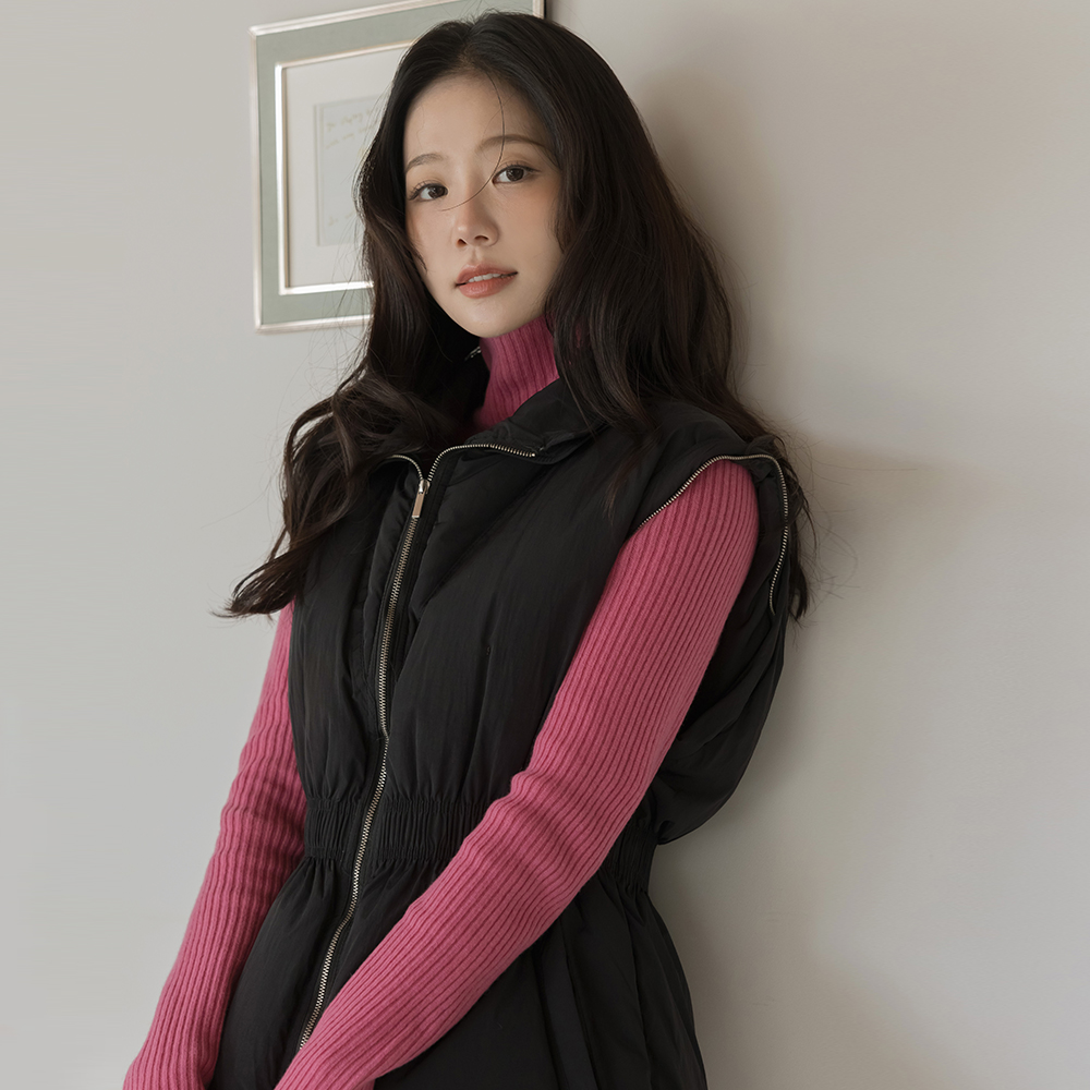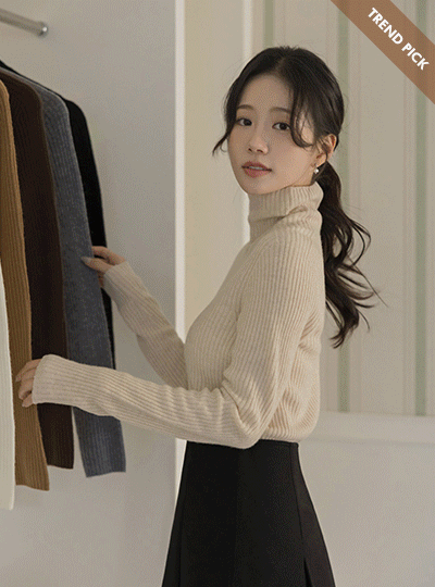 Wool100% High-Neck Whole Garment Corduroy Knit