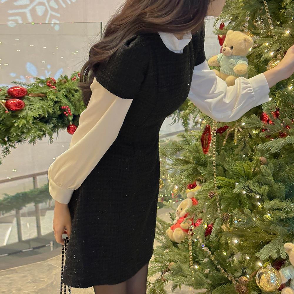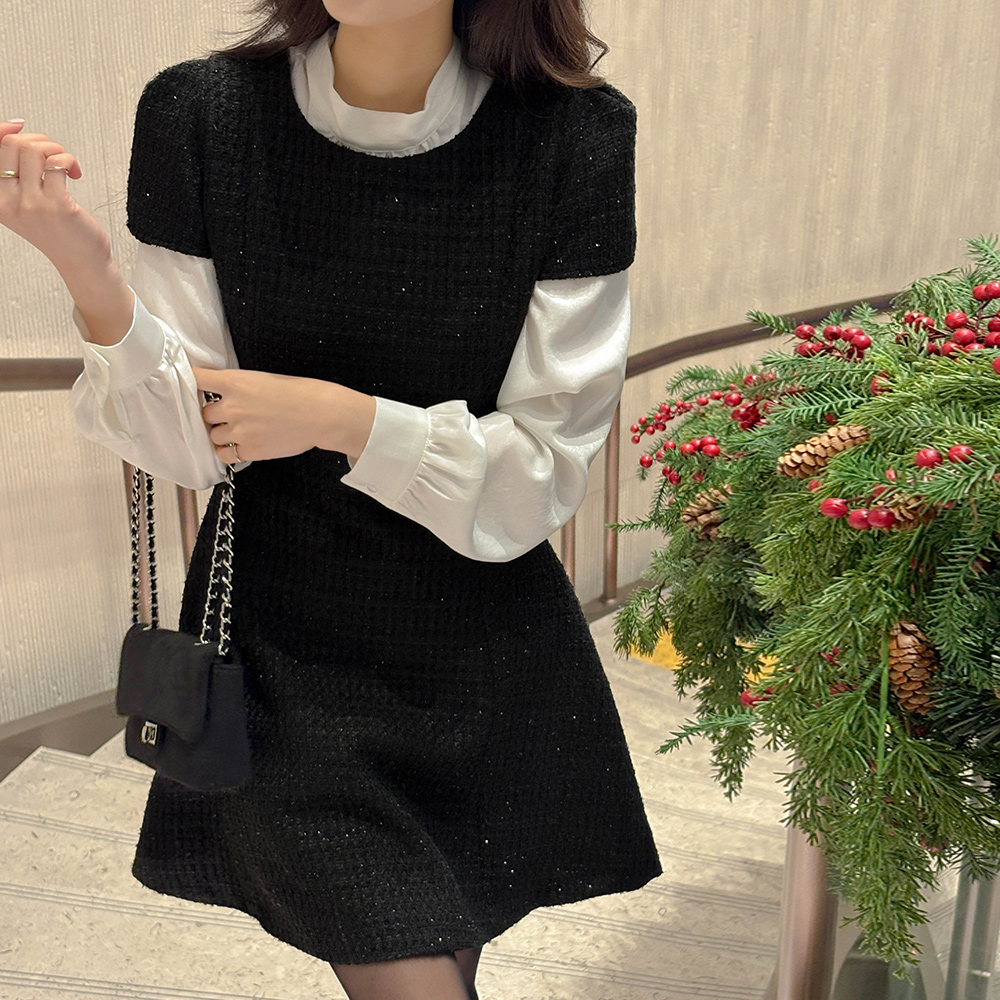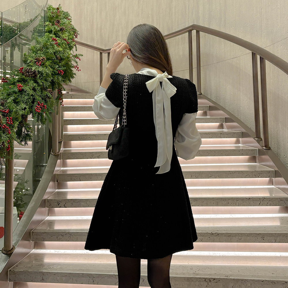 Twinkle Short-sleeve Tweed A-line Mini Dress