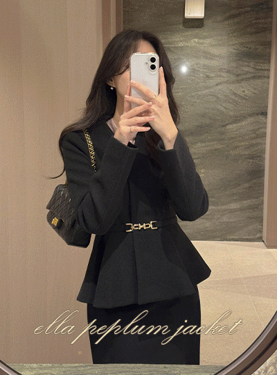 No-collar Wool Peplum Set-up Jacket(+Belt)