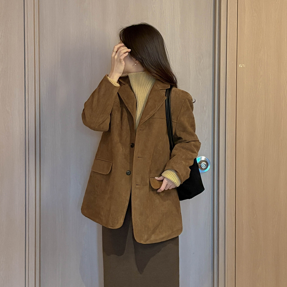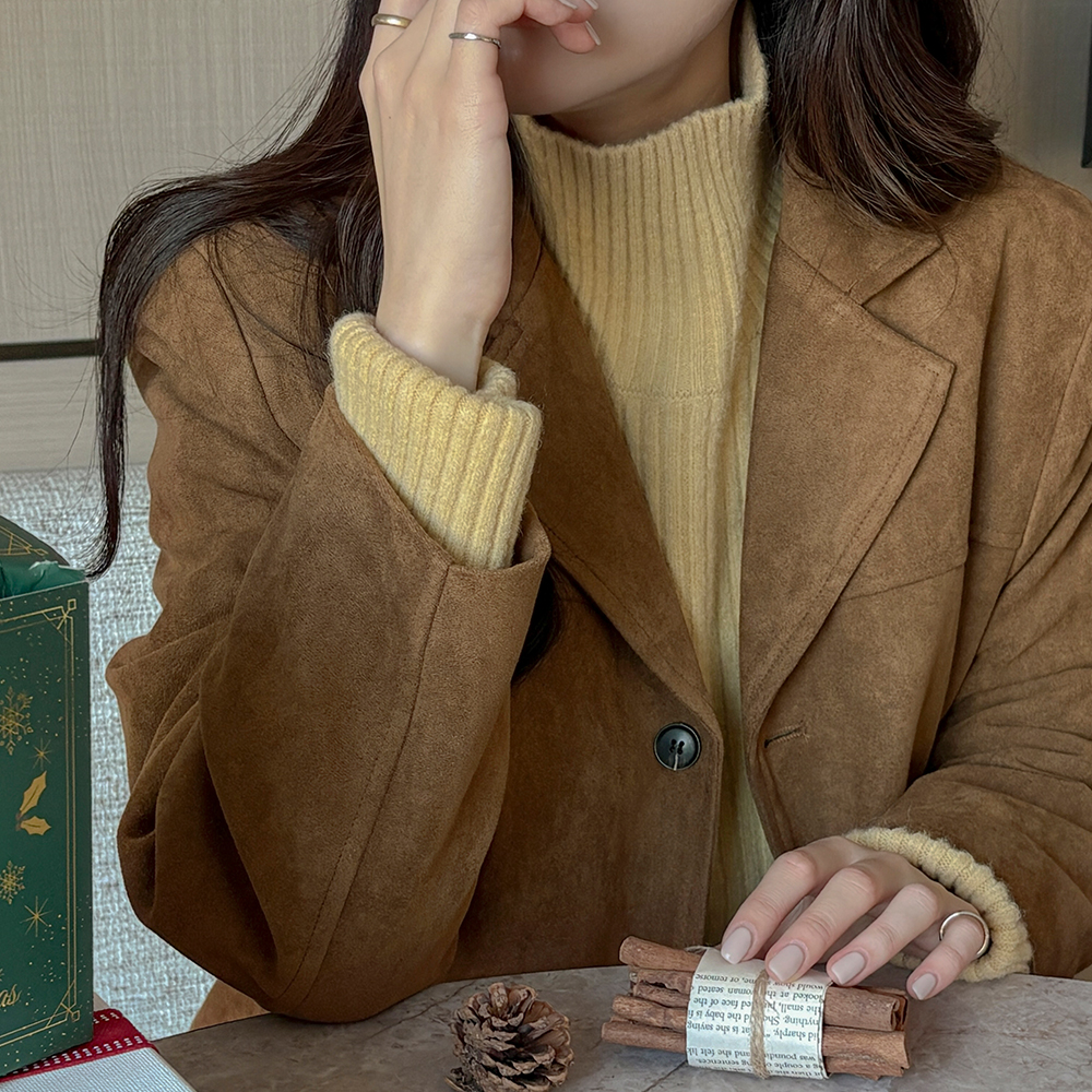 High-Neck Roll-up Reglan Corduroy Knit