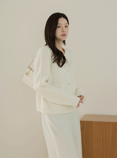 Wool Knit Cardigan&Skirt SET