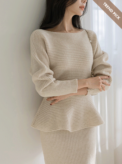 Boat Neck Peplum Knit&Skirt SET