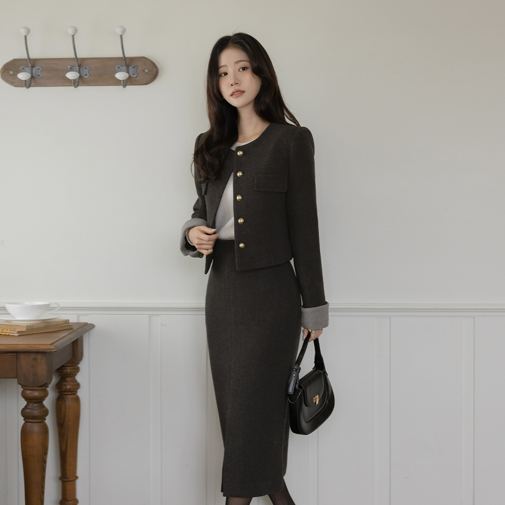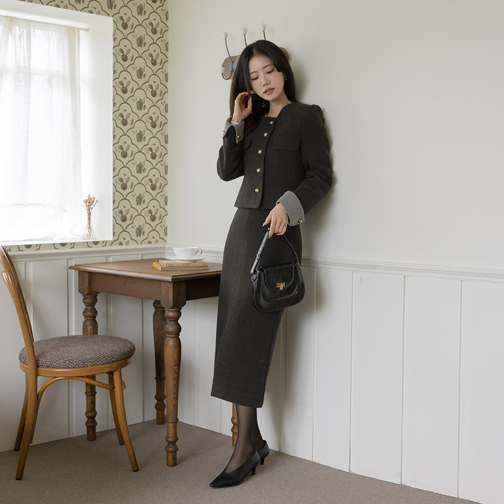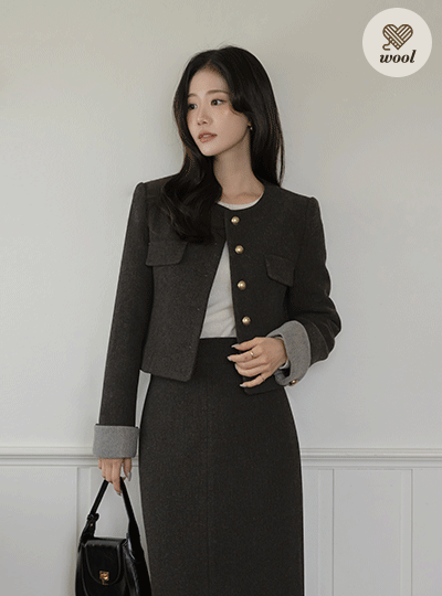 Jenny Wool Roll-up Color Combination Wool Quilting Set-up Jacket