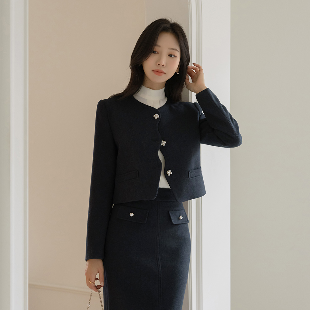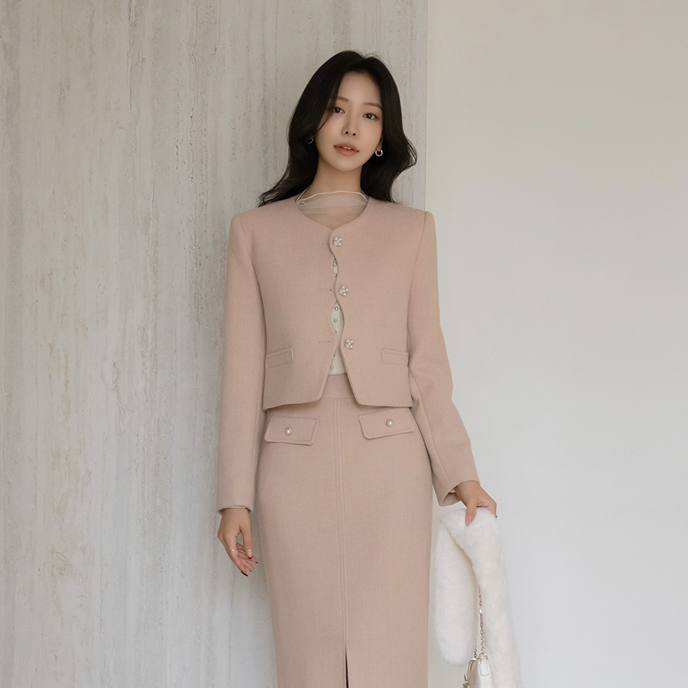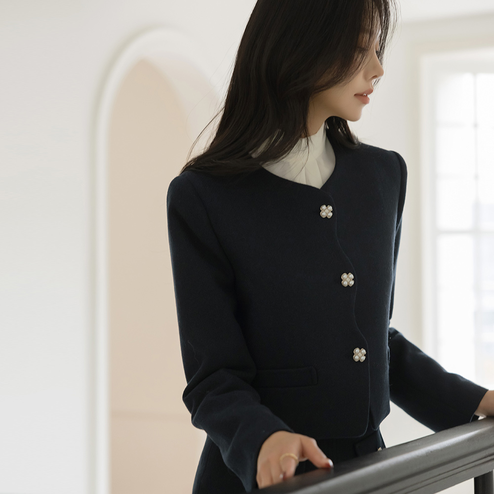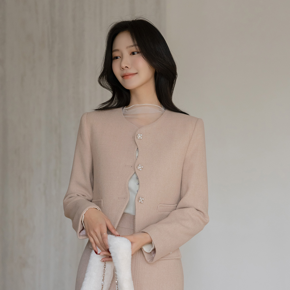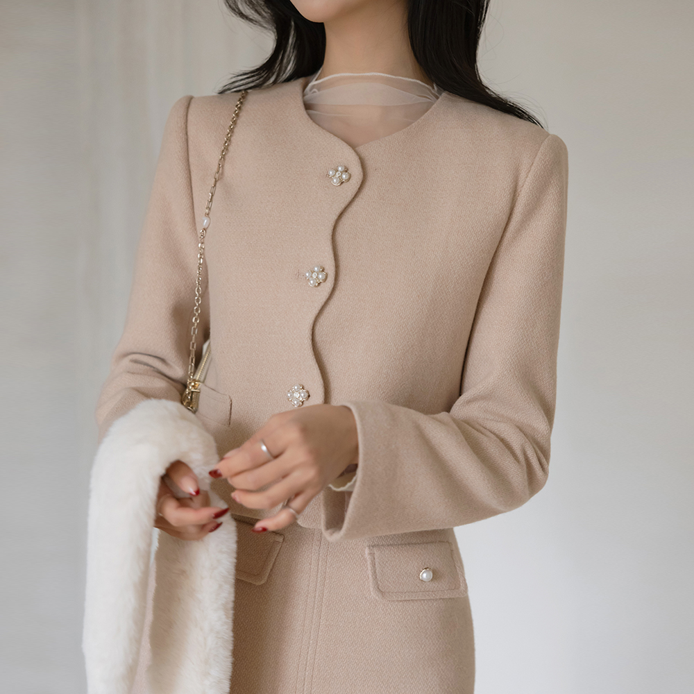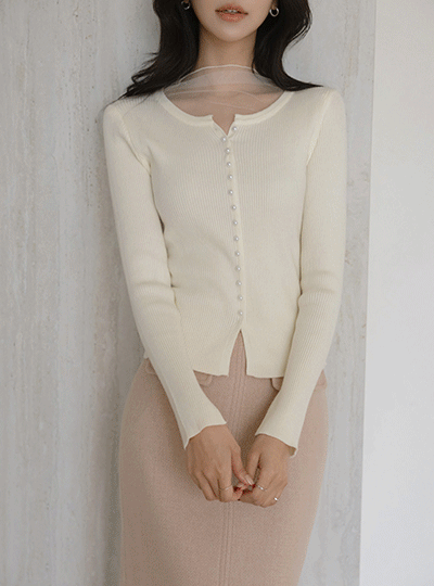 See-through layered Half-Highneck Pearl Corduroy Knit