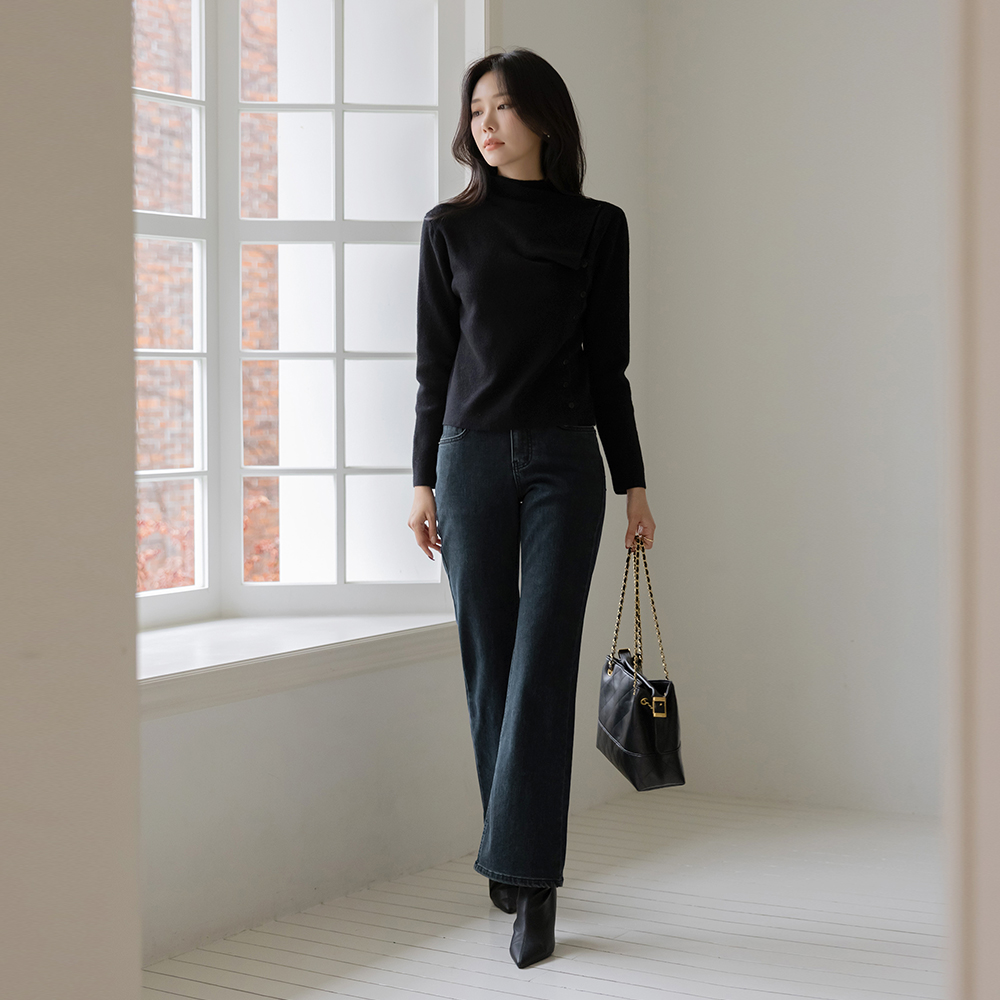 Diagonal Unbalance Button Wool Half-Highneck Knit