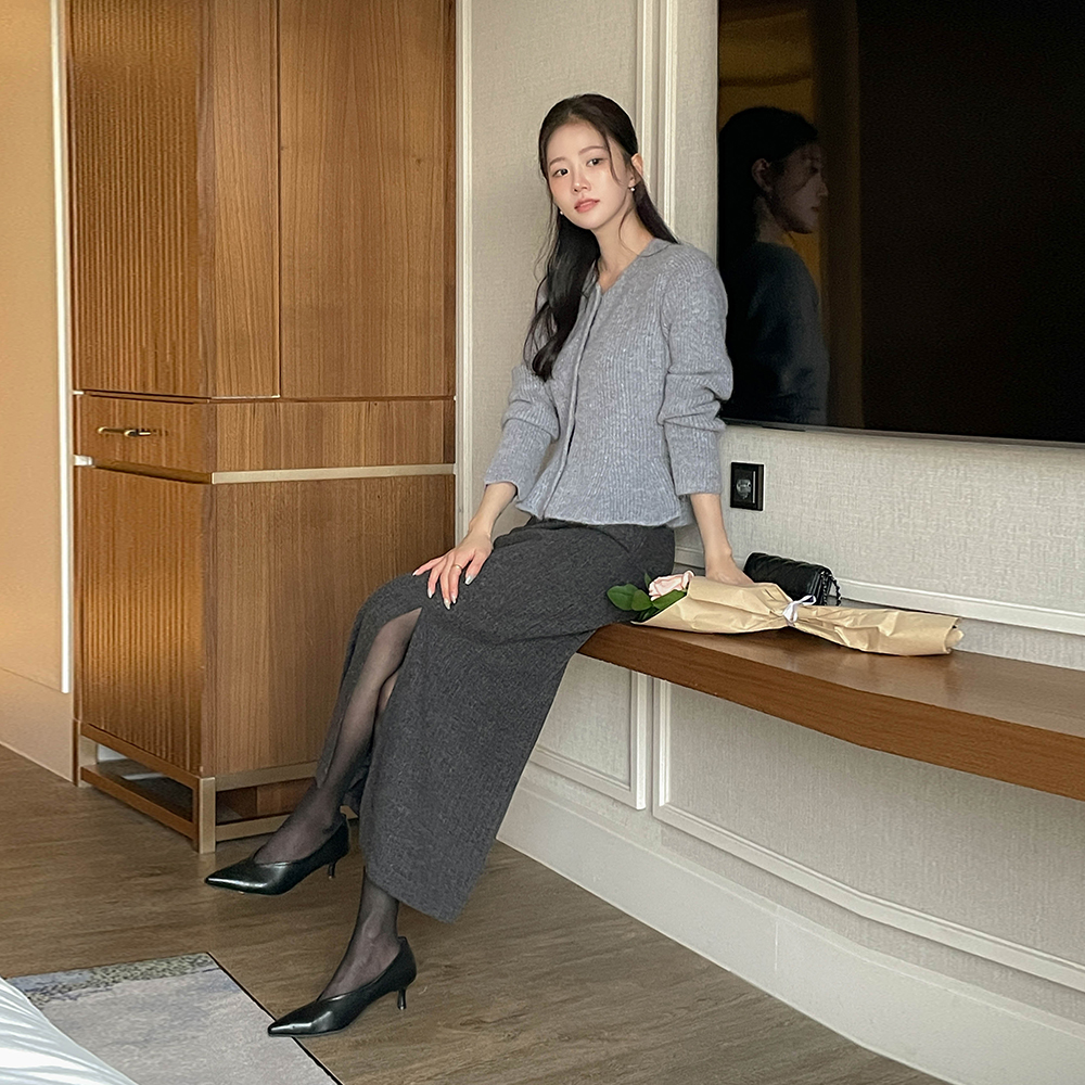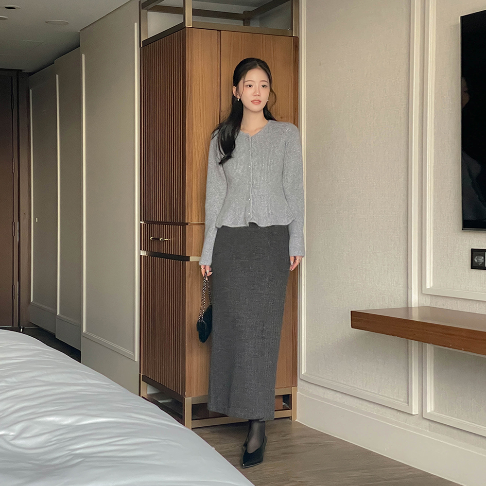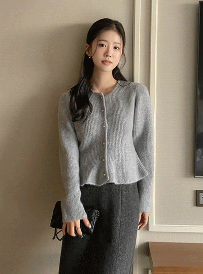 Raund neck Peplum Pearl Angora Cardigan