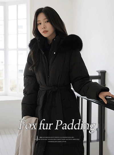 Duck Down 100% Real Fox fur Long-Padded Jumper(+Belt)