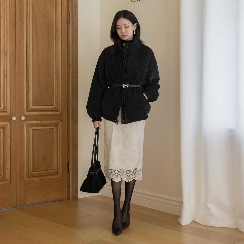 Floral Embroidery Lace H-line Skirt