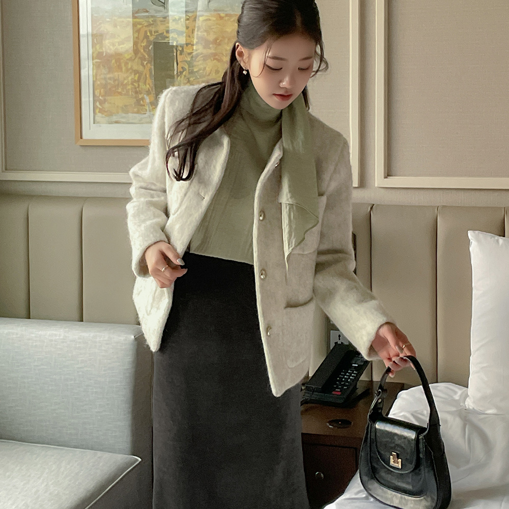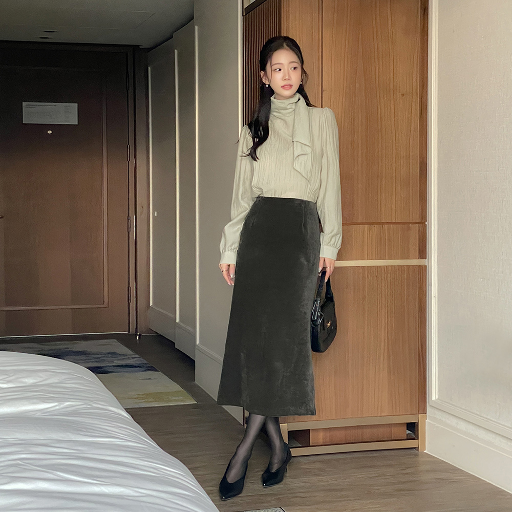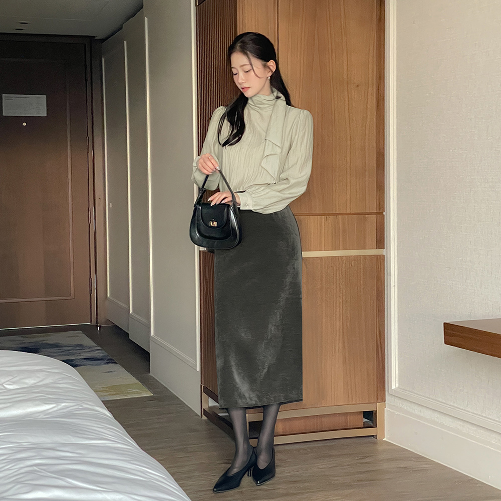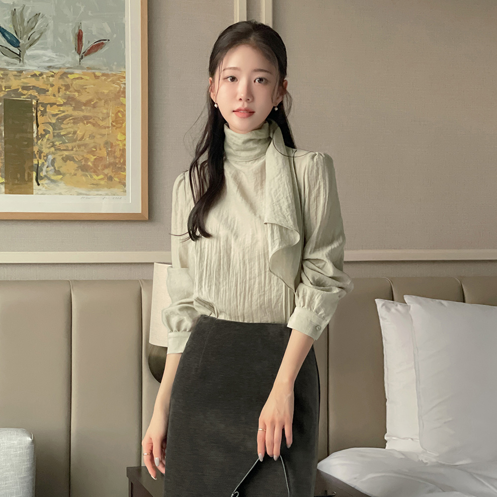 Feminine Scarf-Neck Back-Button Blouse
