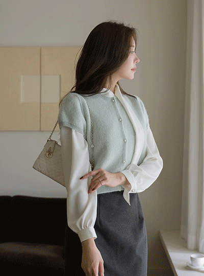 Muse Scarf-Neck Pearl Blouse
