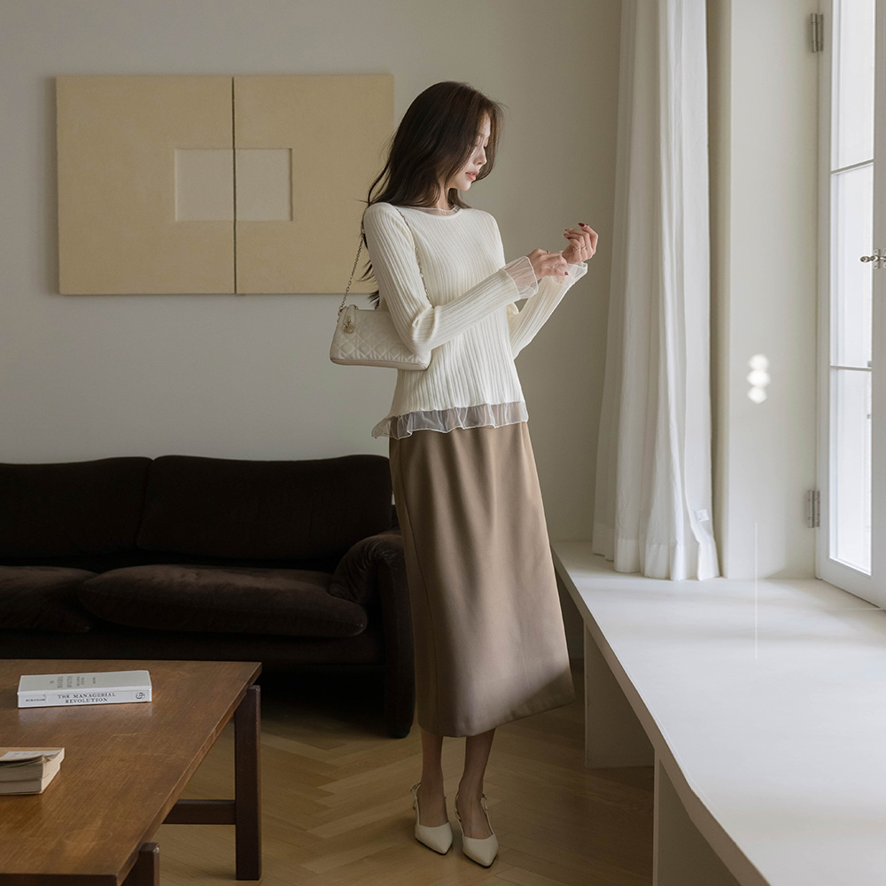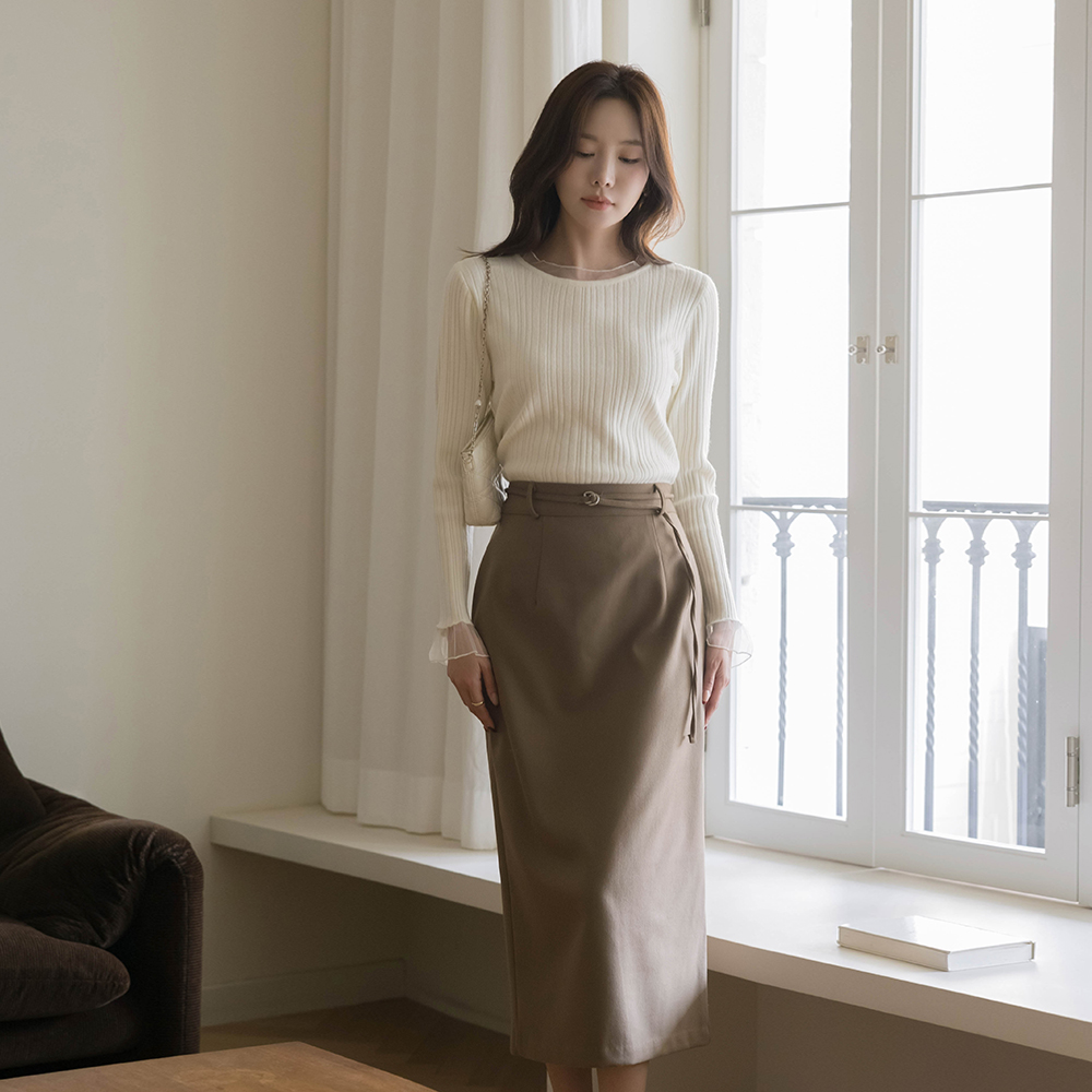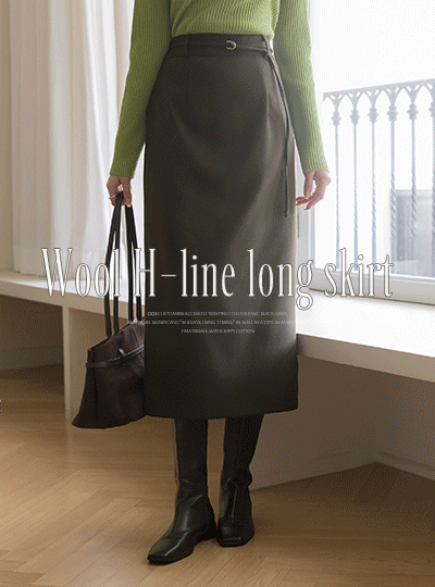Wool Back Banding H-line Long Skirt(+Belt)