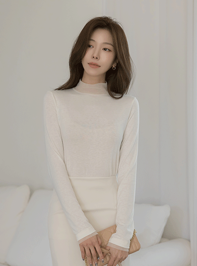 Chiffon Color Combination Turtleneck Span T-shirt