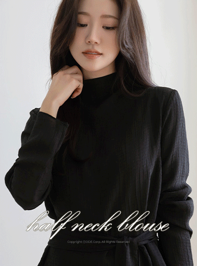 Half-Neck Long-sleeve Blouse(+Belt)