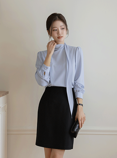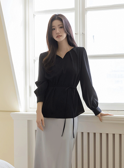 Cutting-Neck Pintuck Blouse(+Belt)