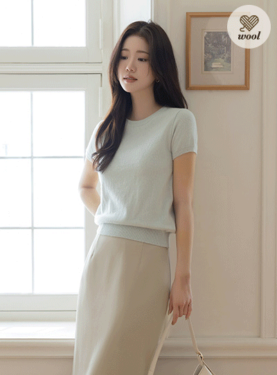 Raund neck Cashmere&Fine Wool Short-sleeve Knit