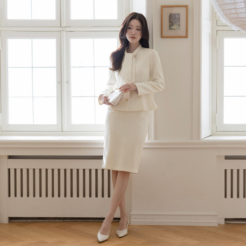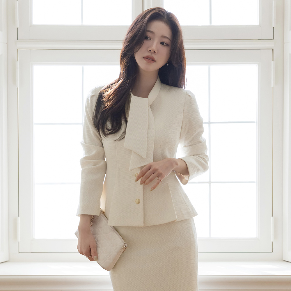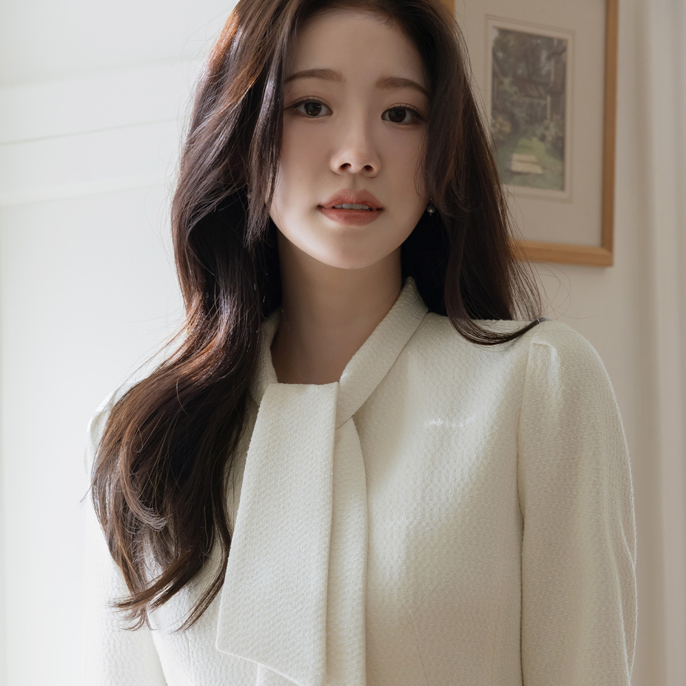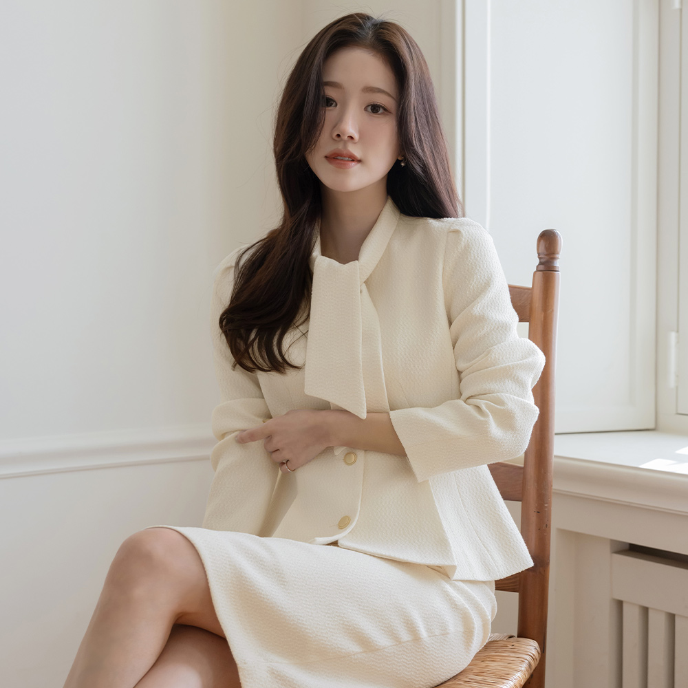 Pony Tie Neck Peplum Tweed Set-up Jacket