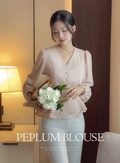Soft V-neck Double Peplum Back Ribbon Blouse