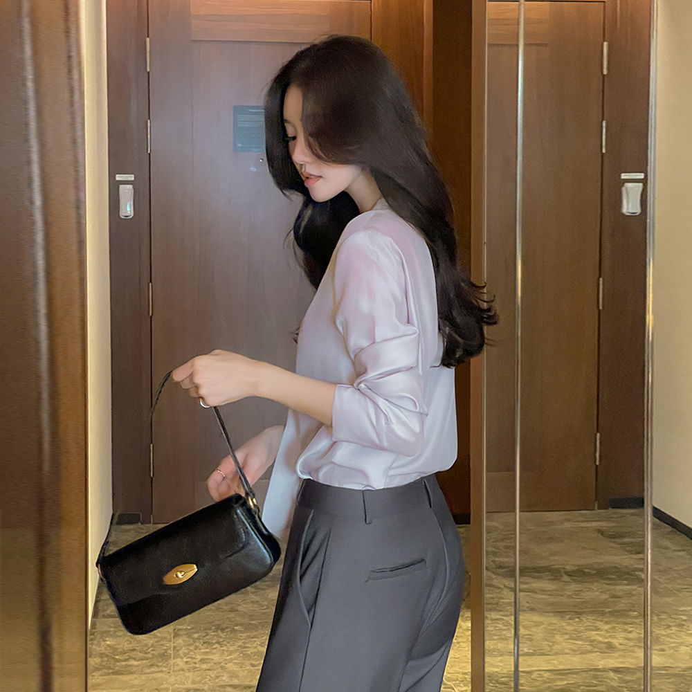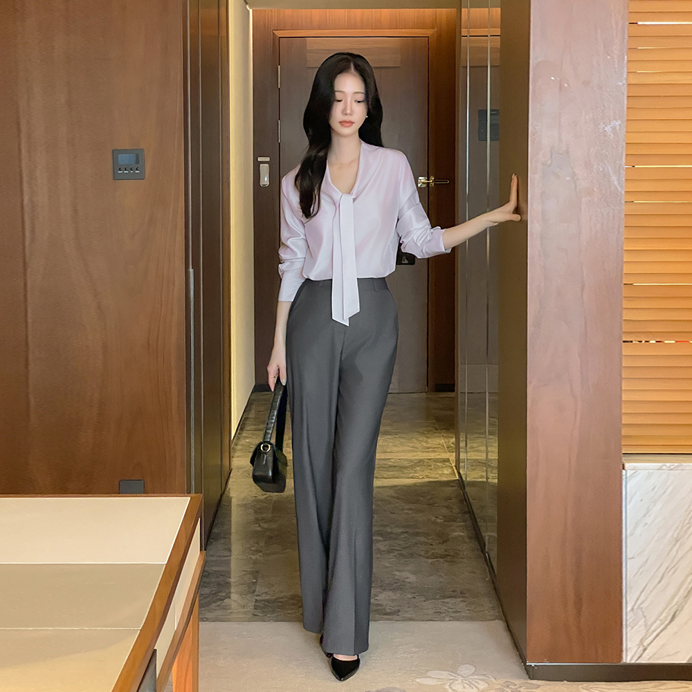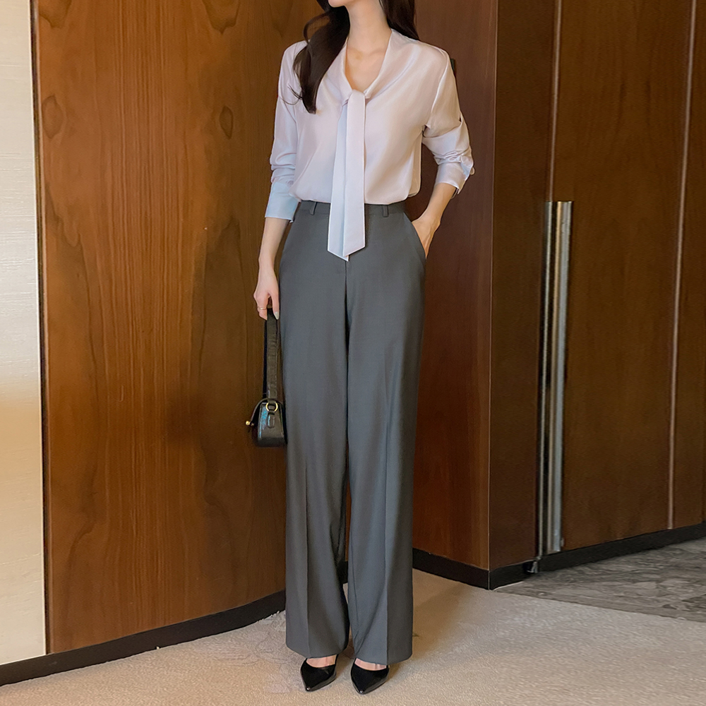 Tie Neck Glow Long-sleeve Blouse