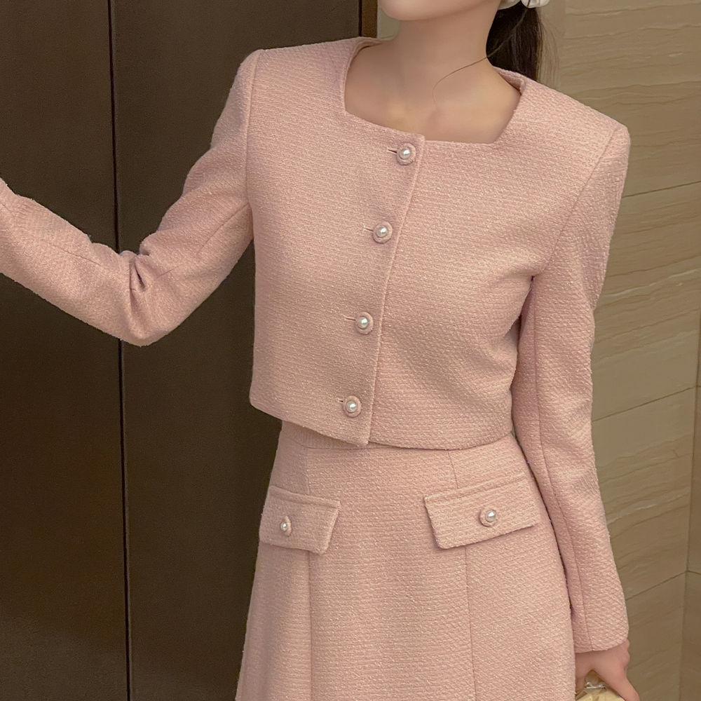 lucy Pearl Crop Tweed Set-up Jacket