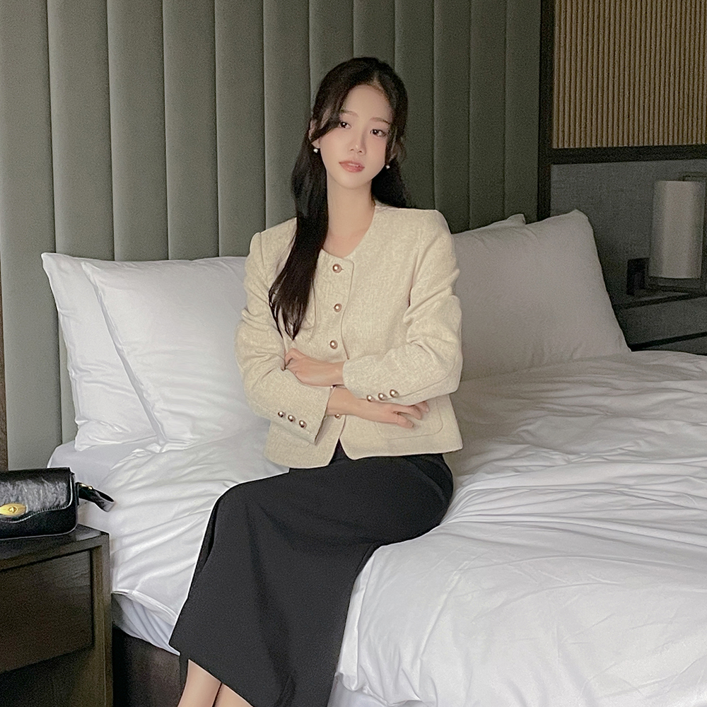 VNeck Tulle Pearl Color Combination Knit