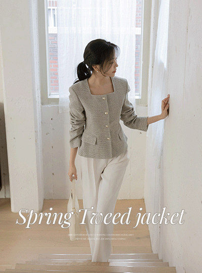 Square Neck Slim Fit Tweed Jacket