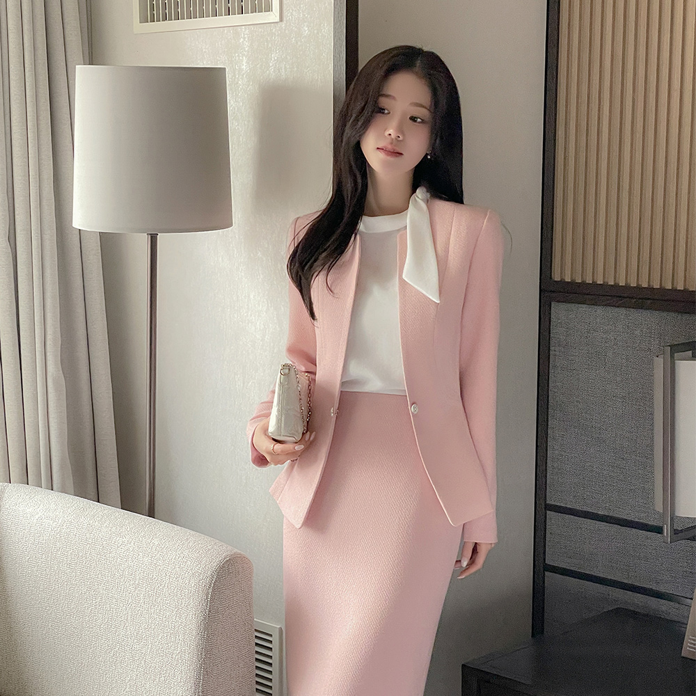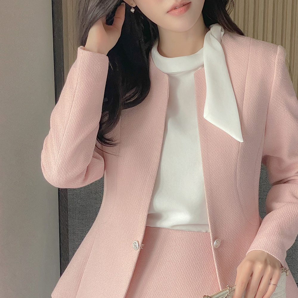 ๋ฏธ์…ธ No-collar Peplum Tweed Set-up Jacket