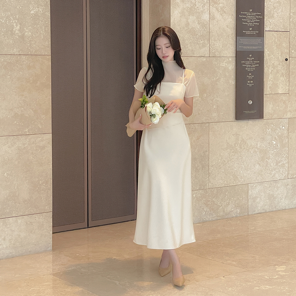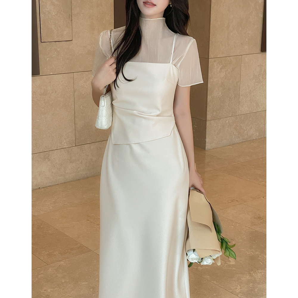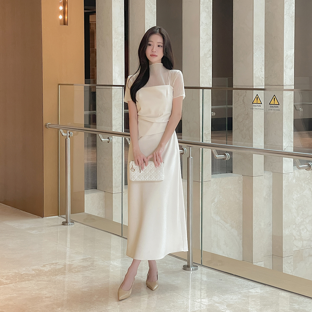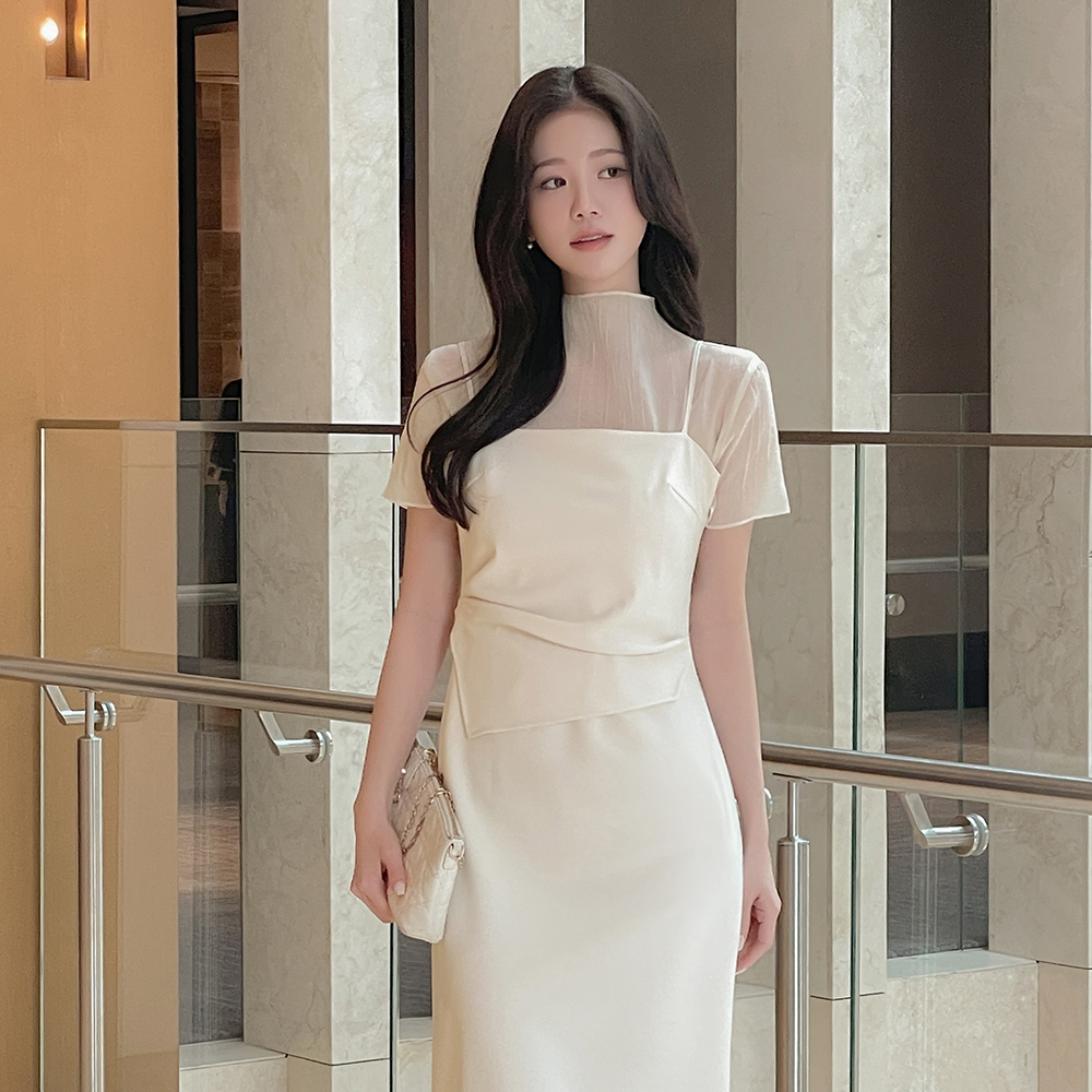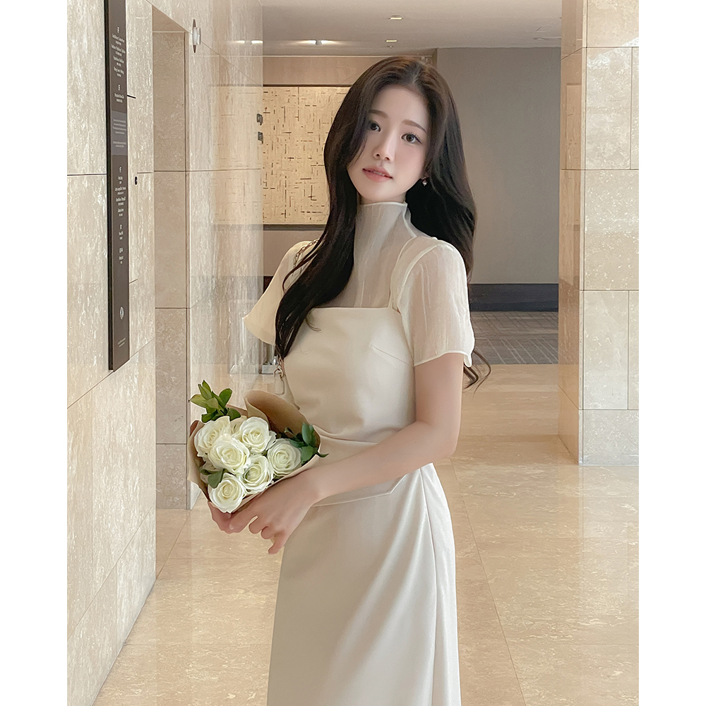 Half-Highneck See-through Short-sleeve Blouse