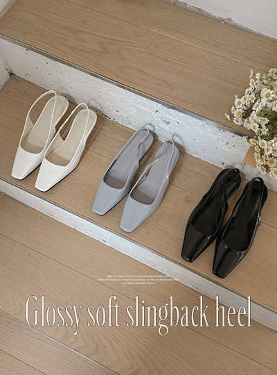 Glossy Soft Square Toe Sling Backs Heels