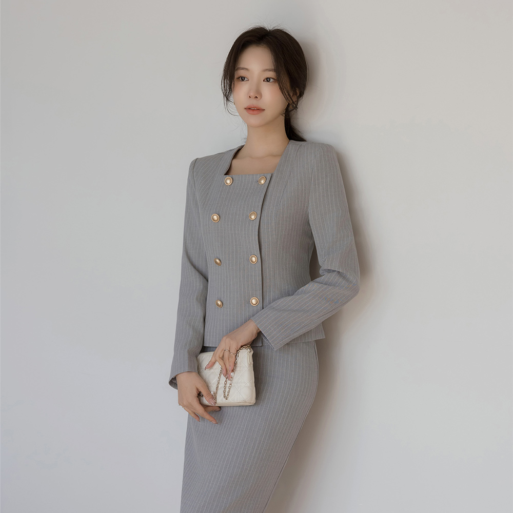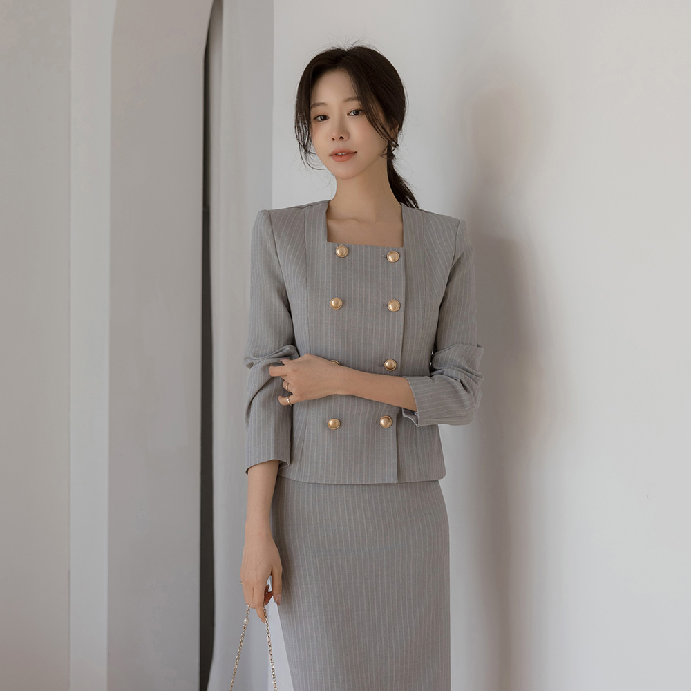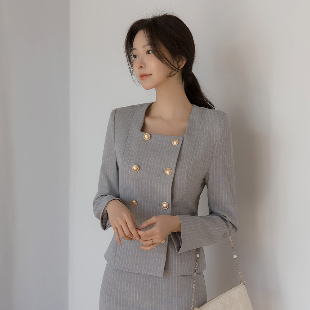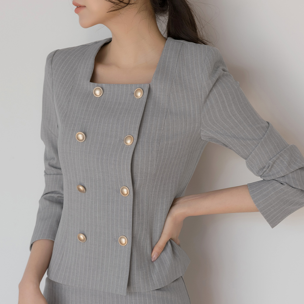 루미 Square Neck Stripe Set-up Jacket