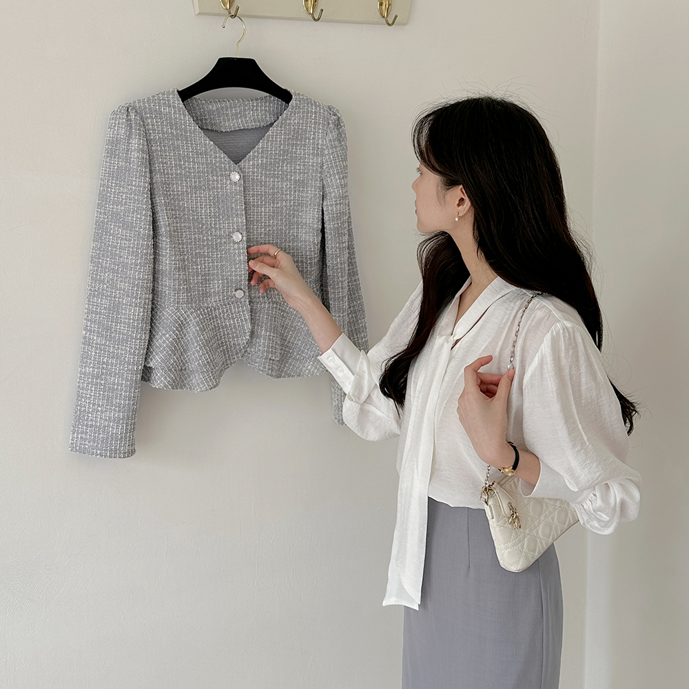 v Tie Neck Button Blouse