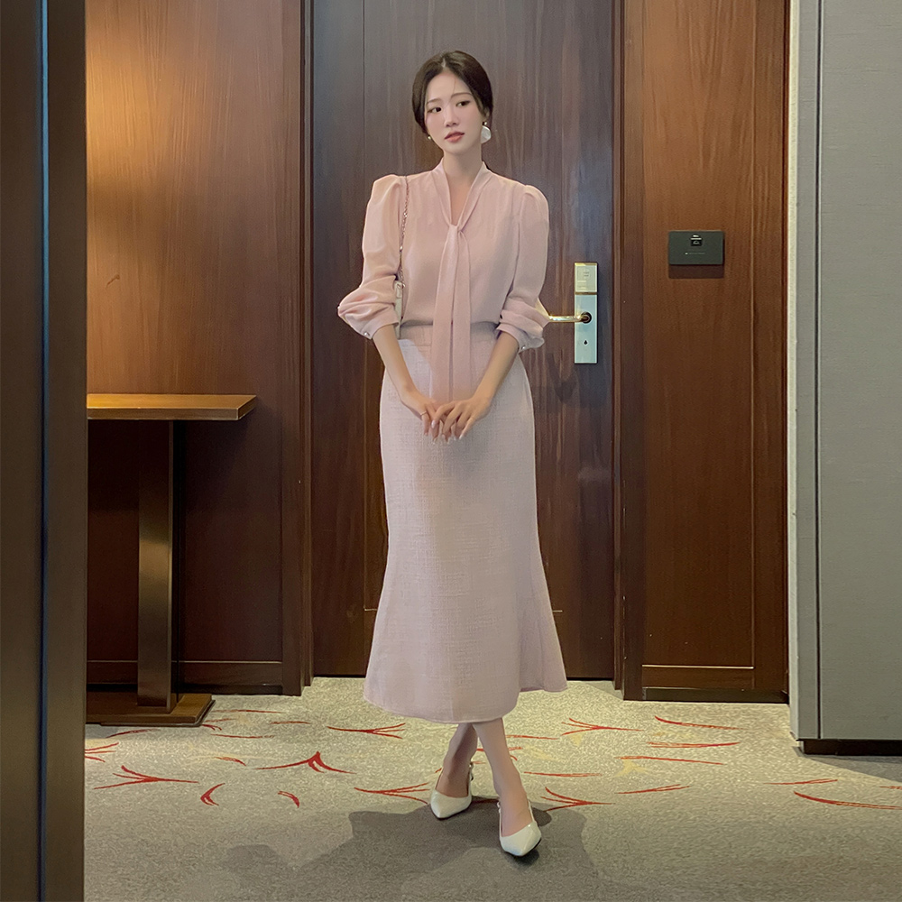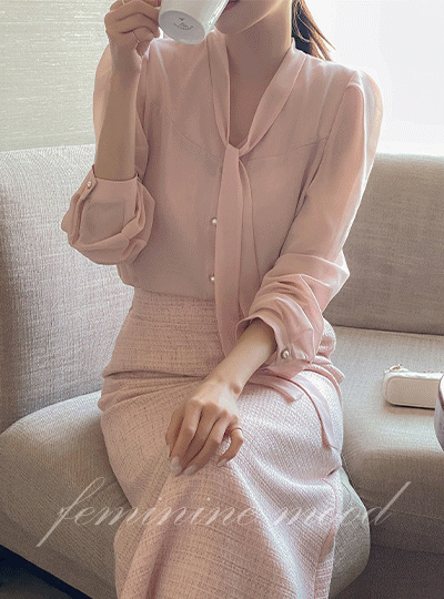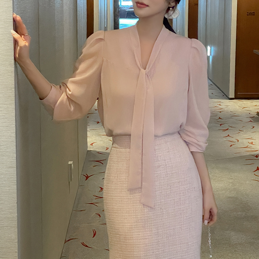 Tie Neck Sleeves See-through Color Combination Blouse(Spring)
