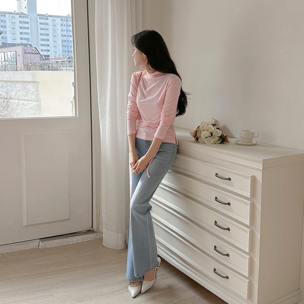 [O:neul] Pure Skily Touch Strap Belt Half-Turtleneck T-shirt
