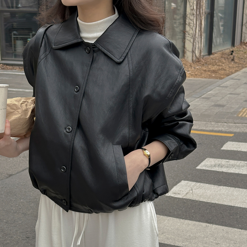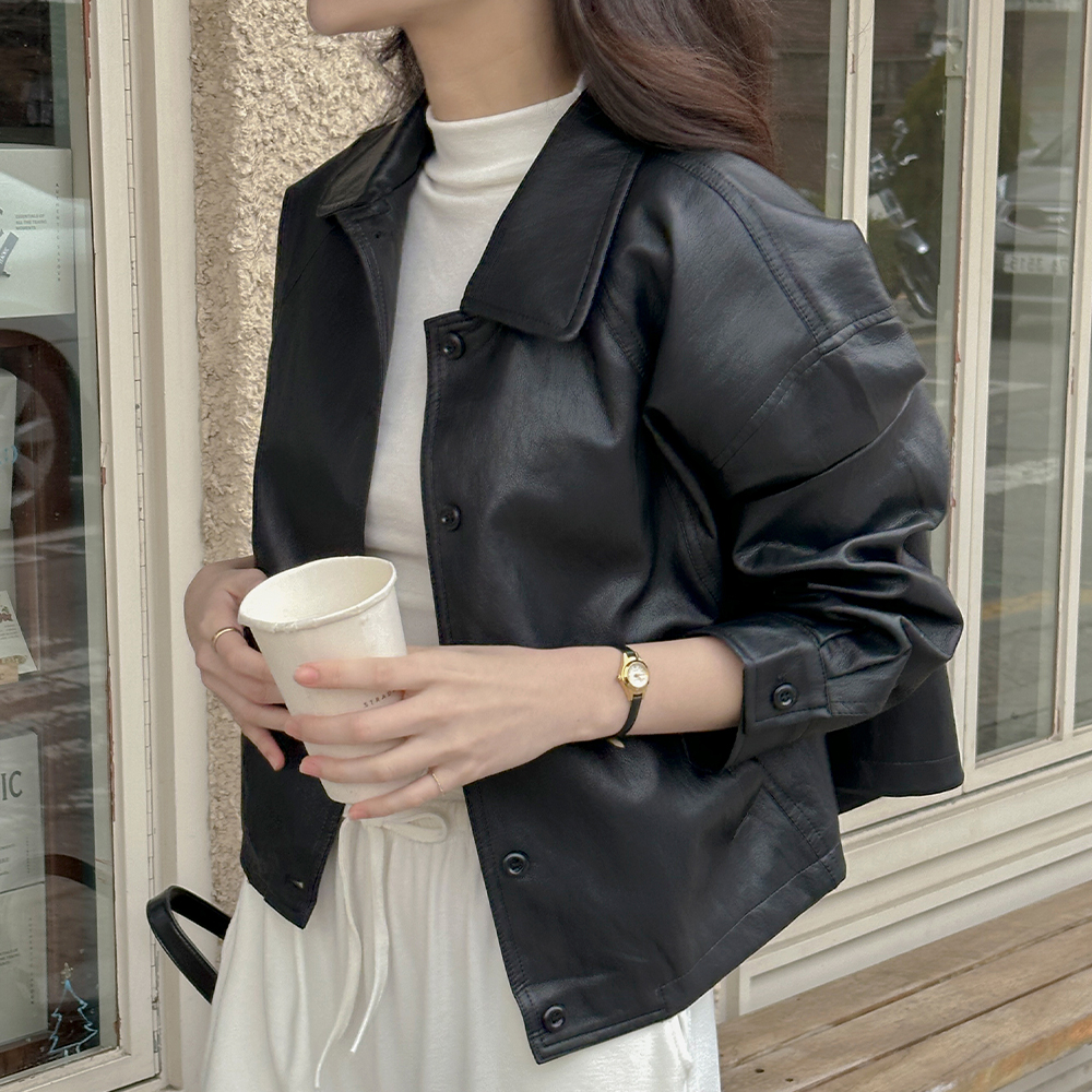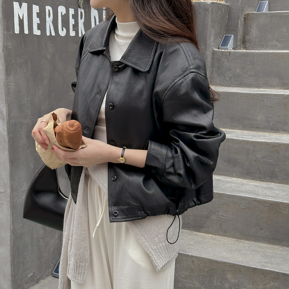 Basic Polo String Leather Jacket