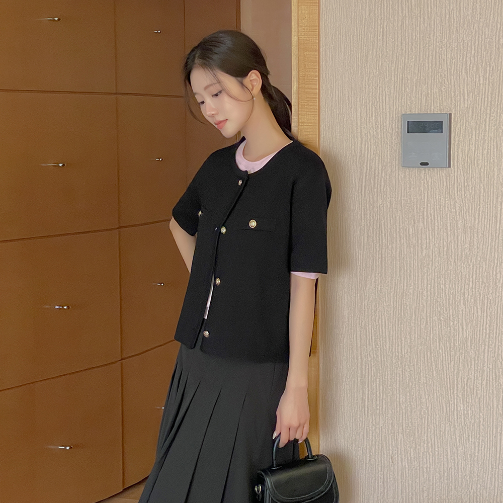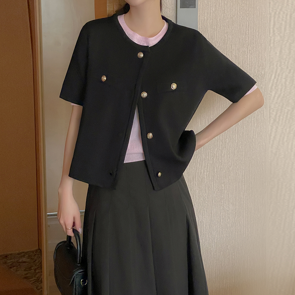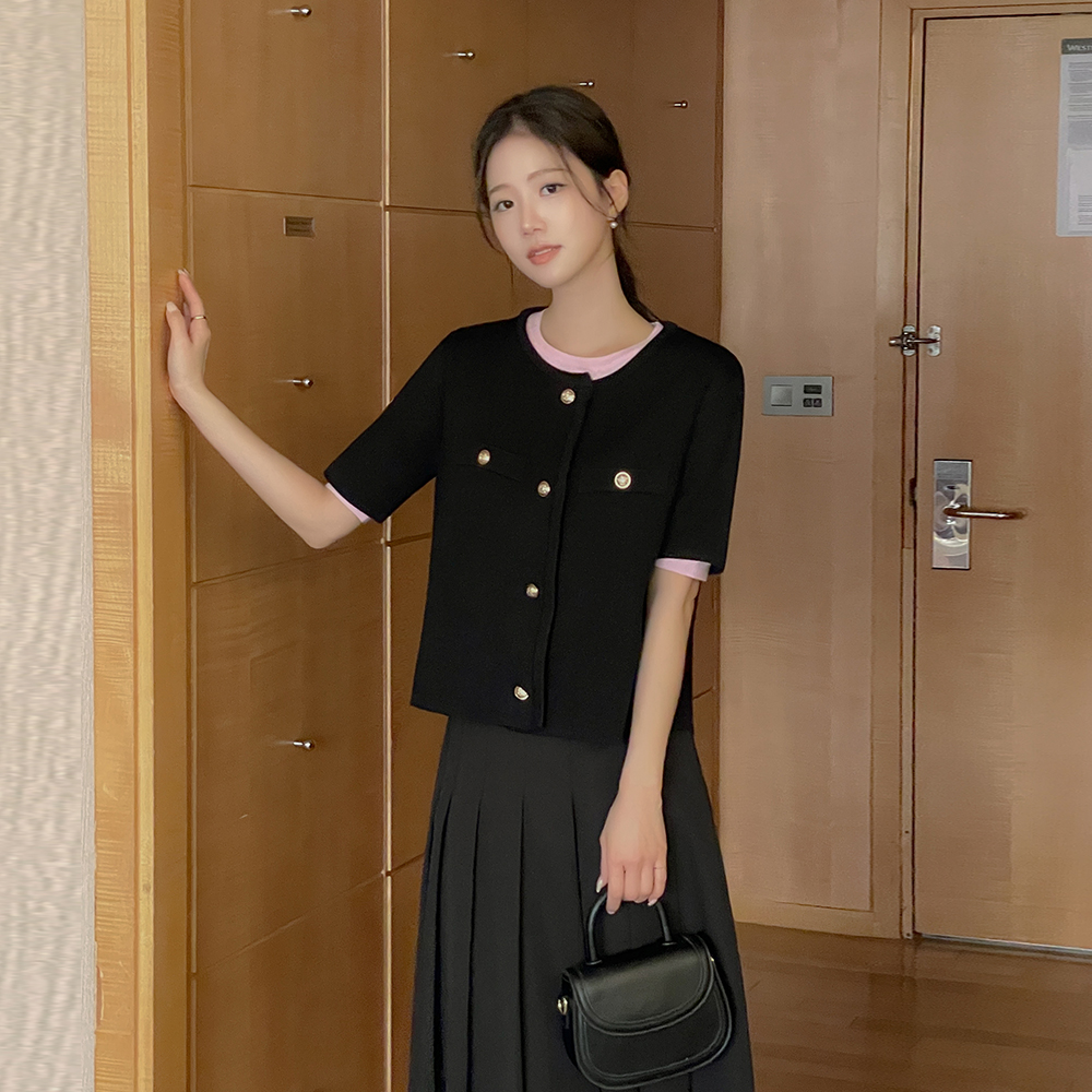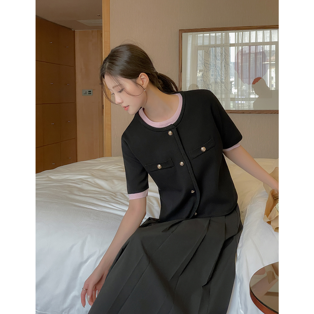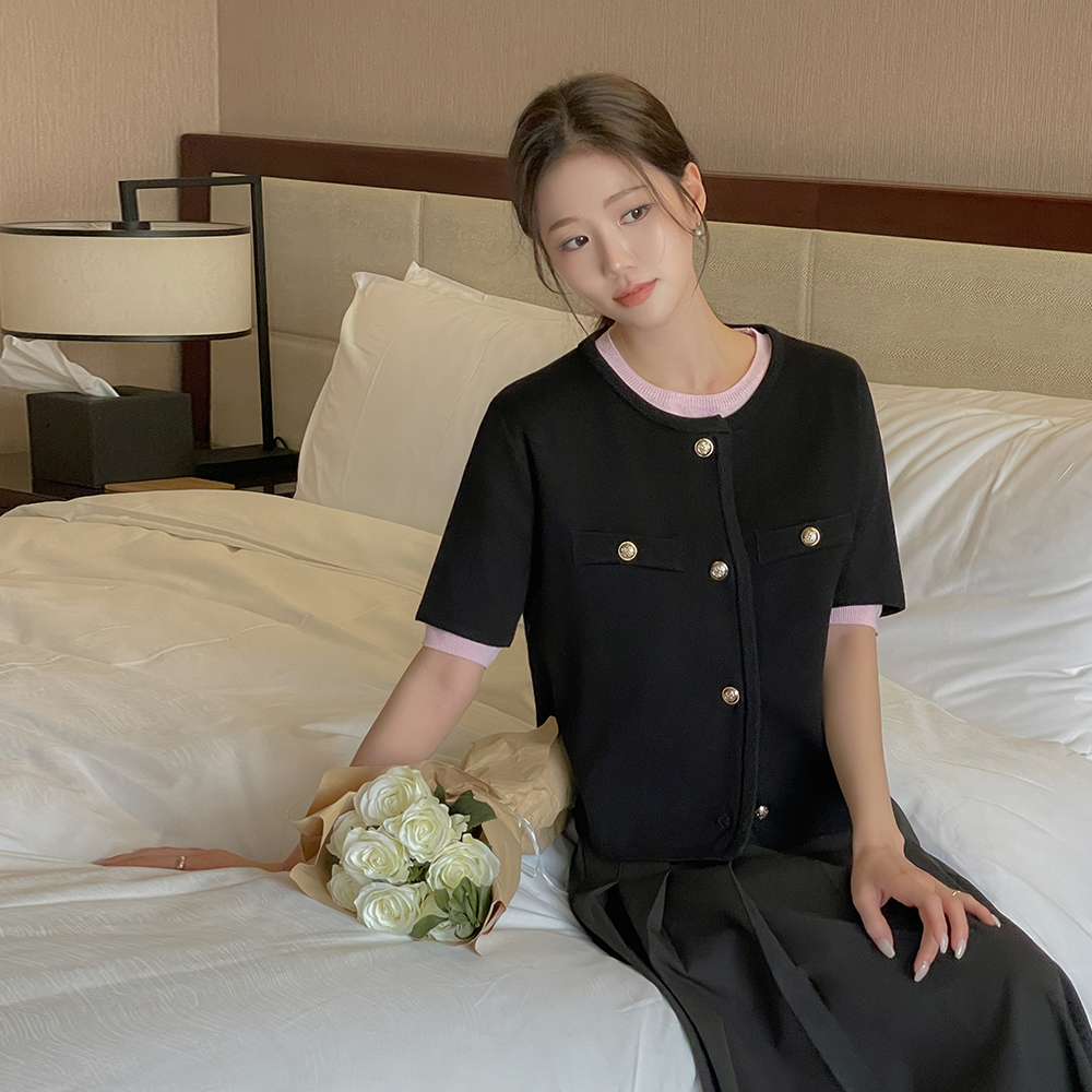 Color Point Raund neck Short-sleeve Knit