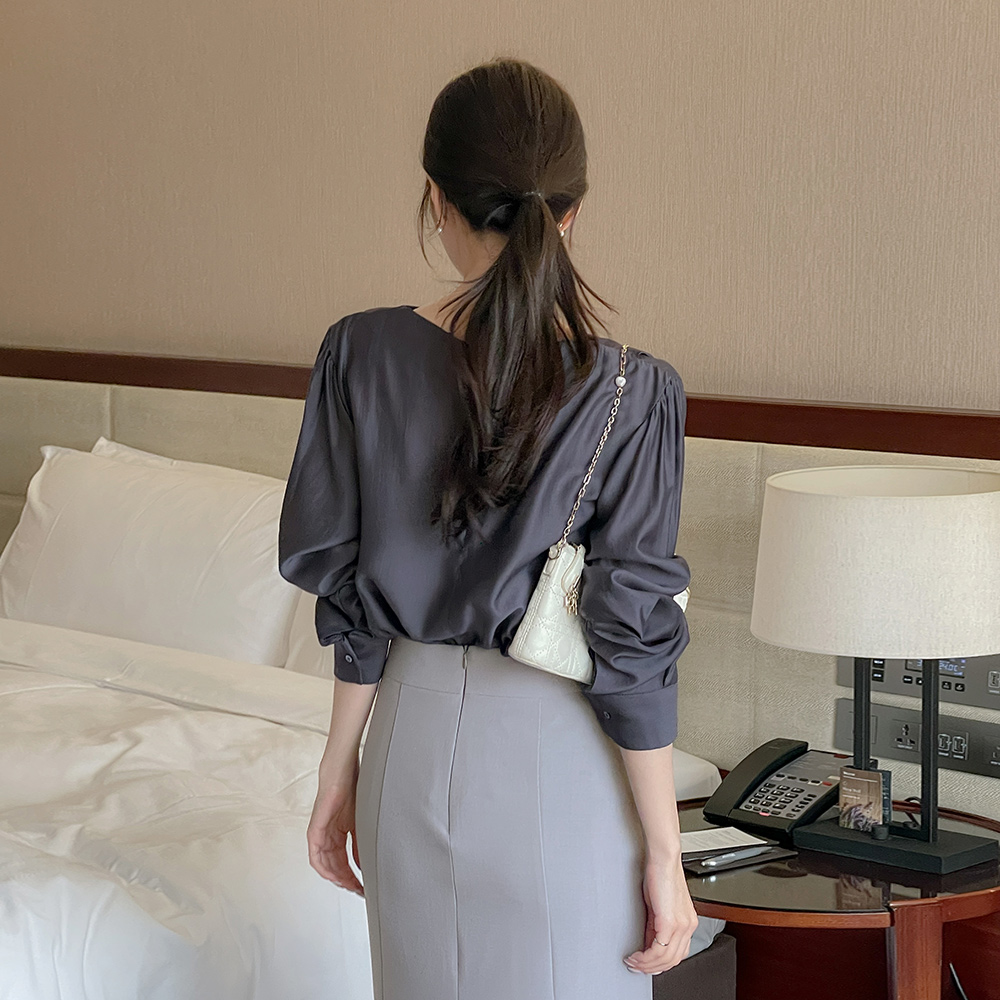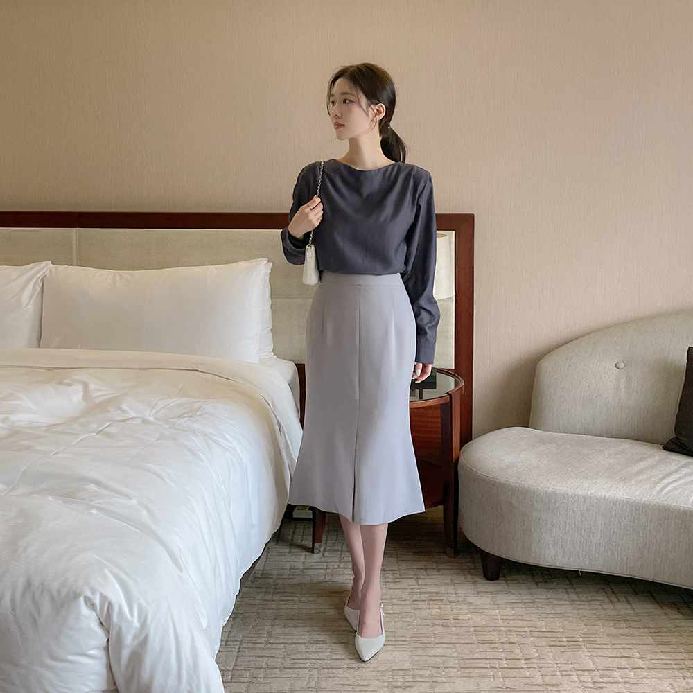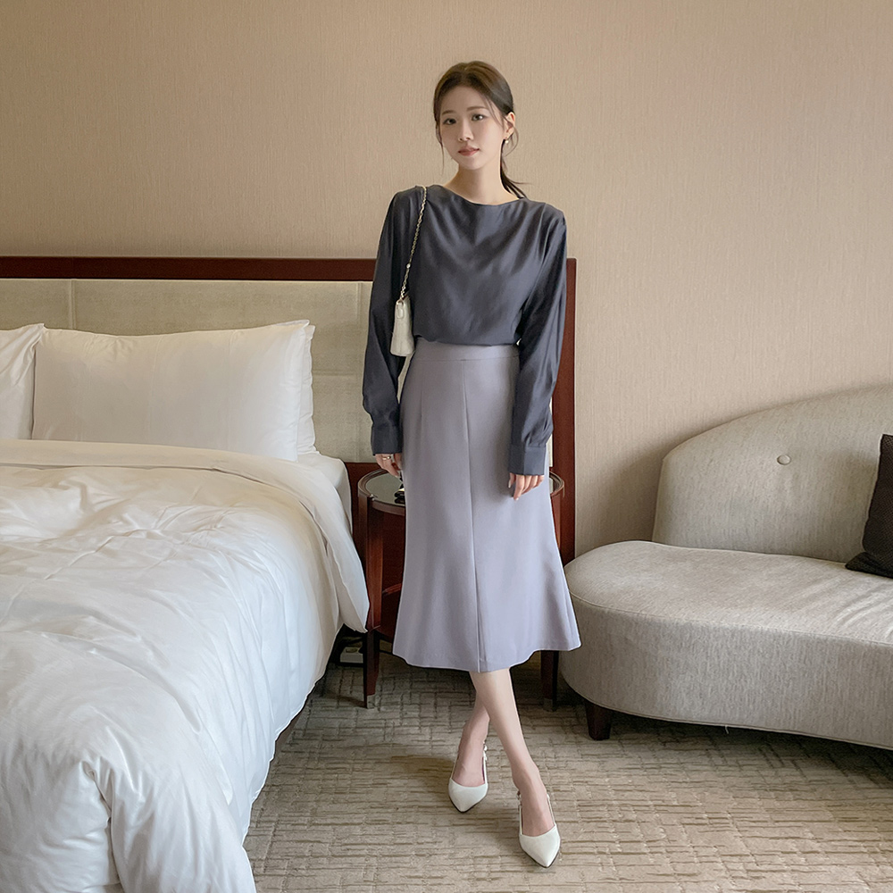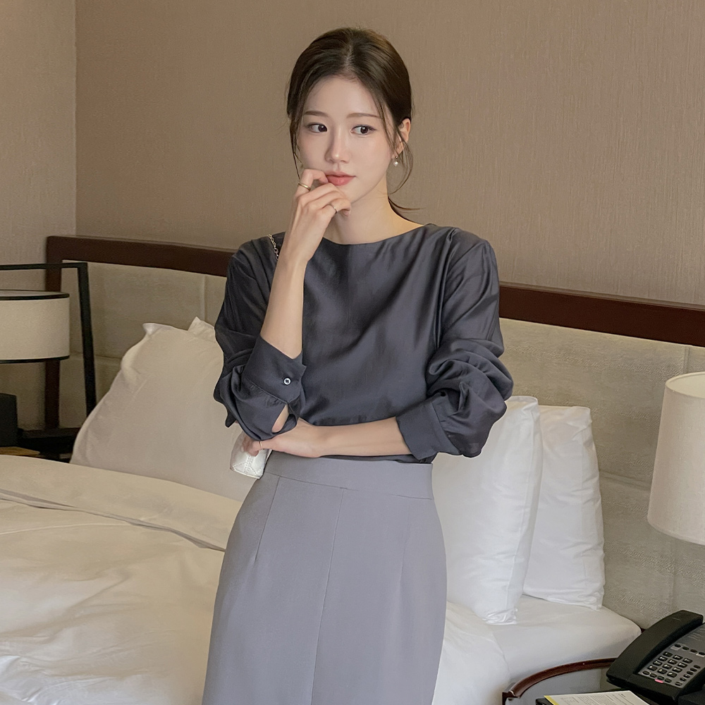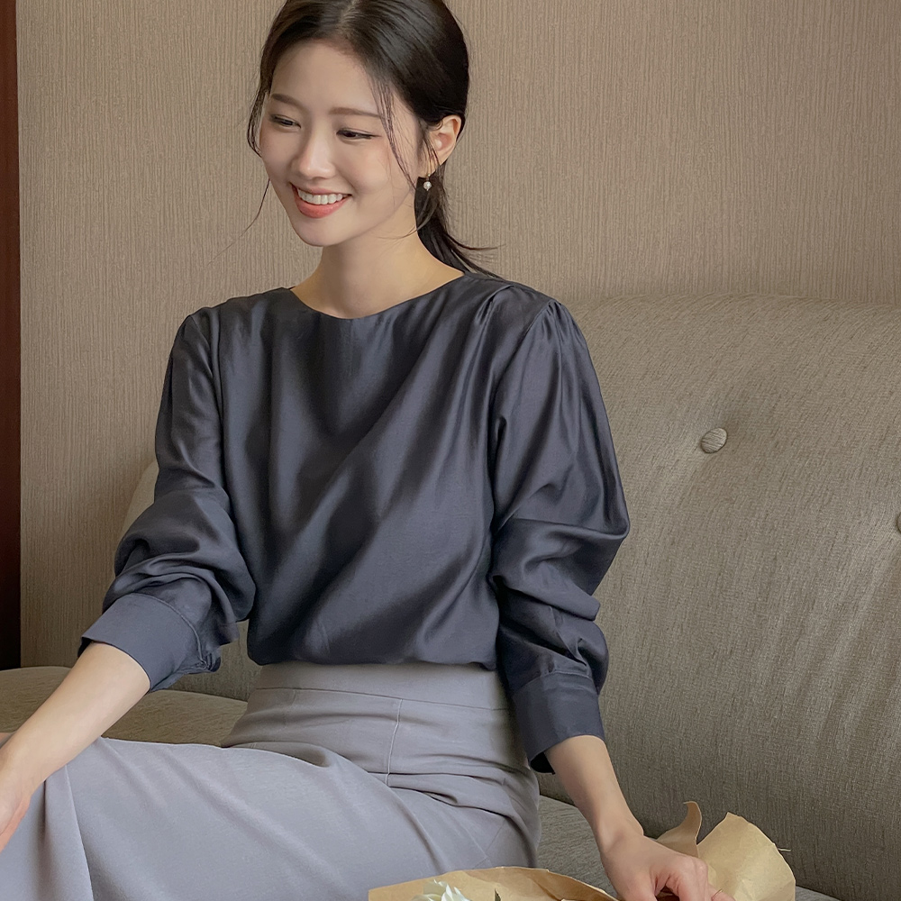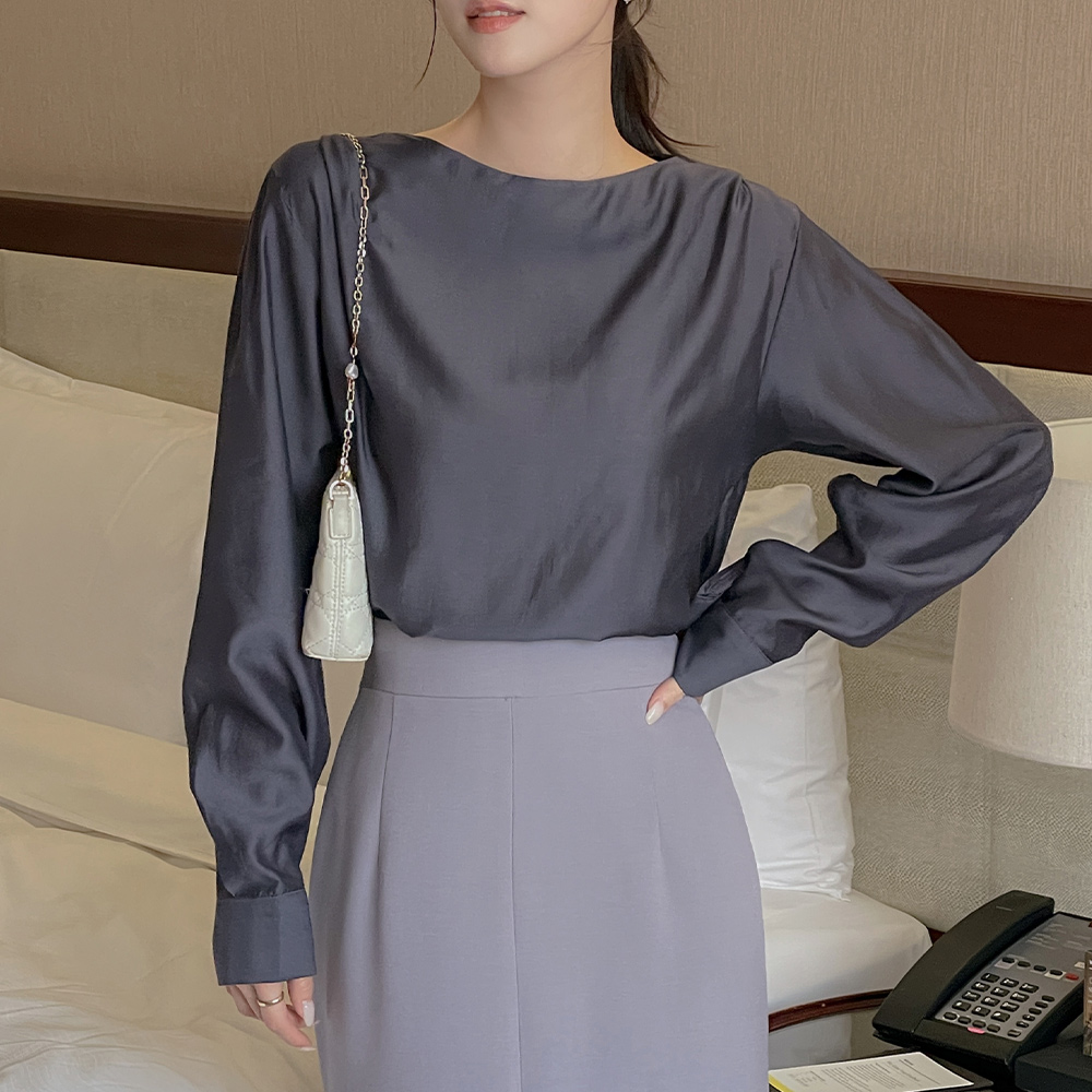 ๋ฒจ๋ผ Tencel Boat Neck Long-sleeve Blouse