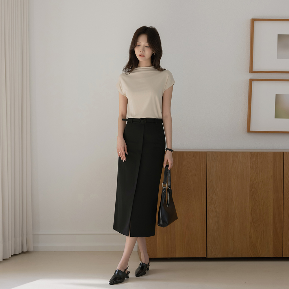 Soft Half-Neck Cap-Sleeves Span T-shirt