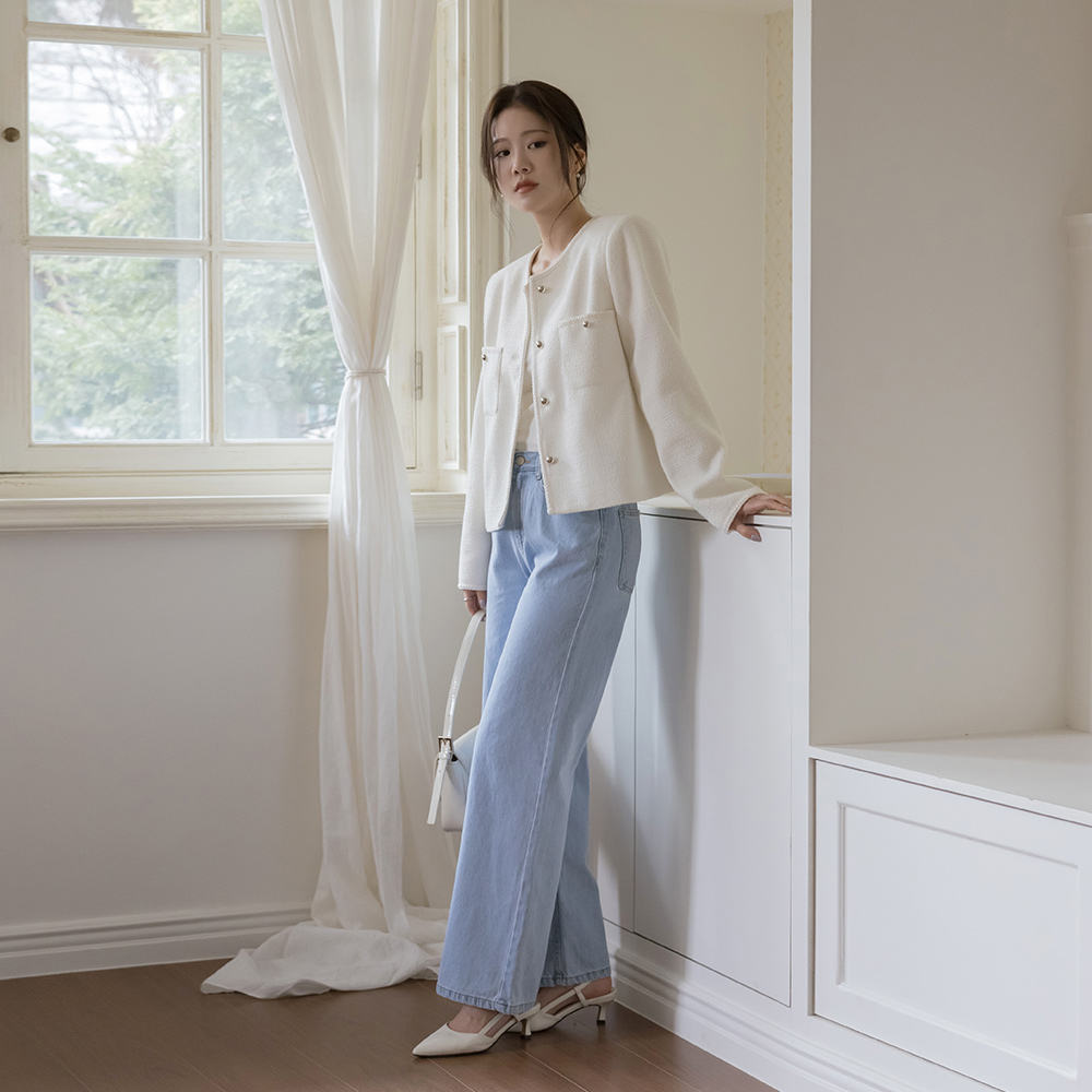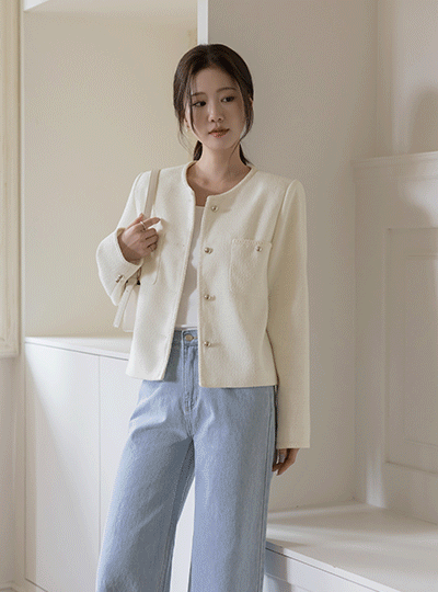 plain Raund neck Tweed Jacket